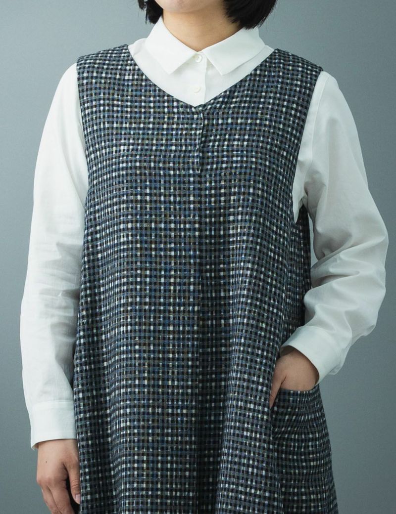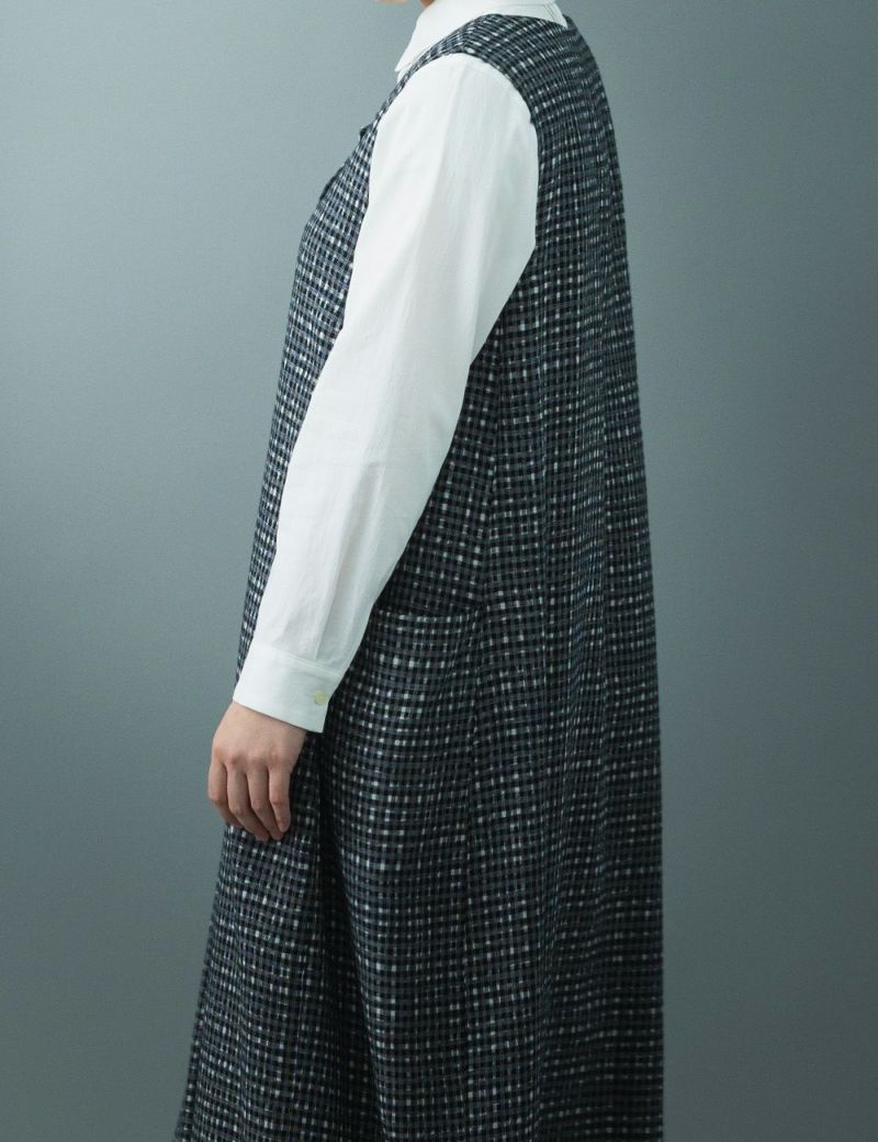 マンガン絣ギンガム水玉 ワンピース沢鵯(さわひよどり)