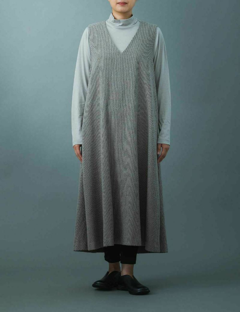 たっぷりと生地を使ったAラインが美しいシルエットです。脇にファスナーが付いていますので着用がとても楽です。