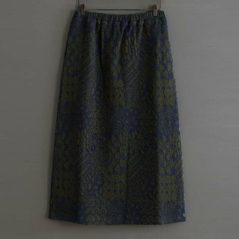 二重織のキルト素材が軽く、膝掛けを巻いたみたいにあたたかなスカート。