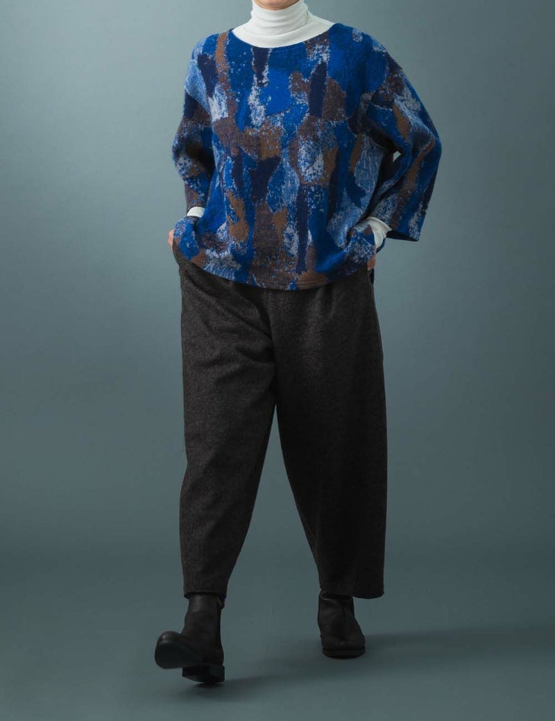 自然のパッチワークが織りなす、絵画のようなニット。