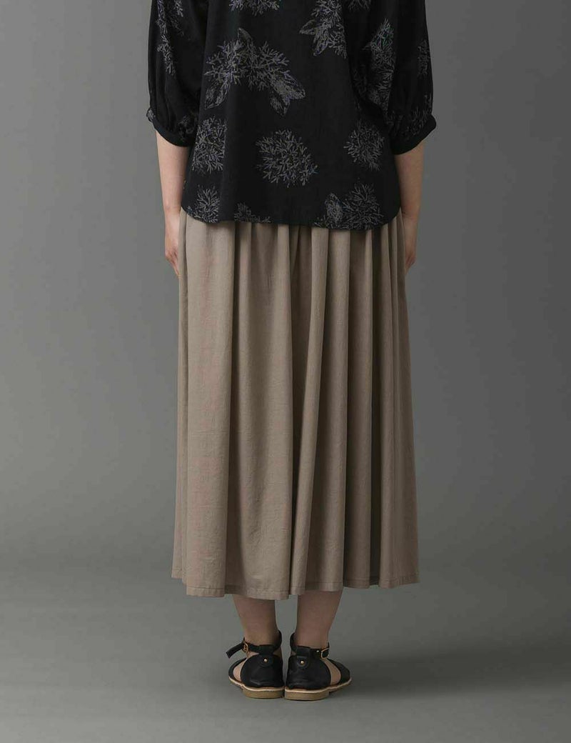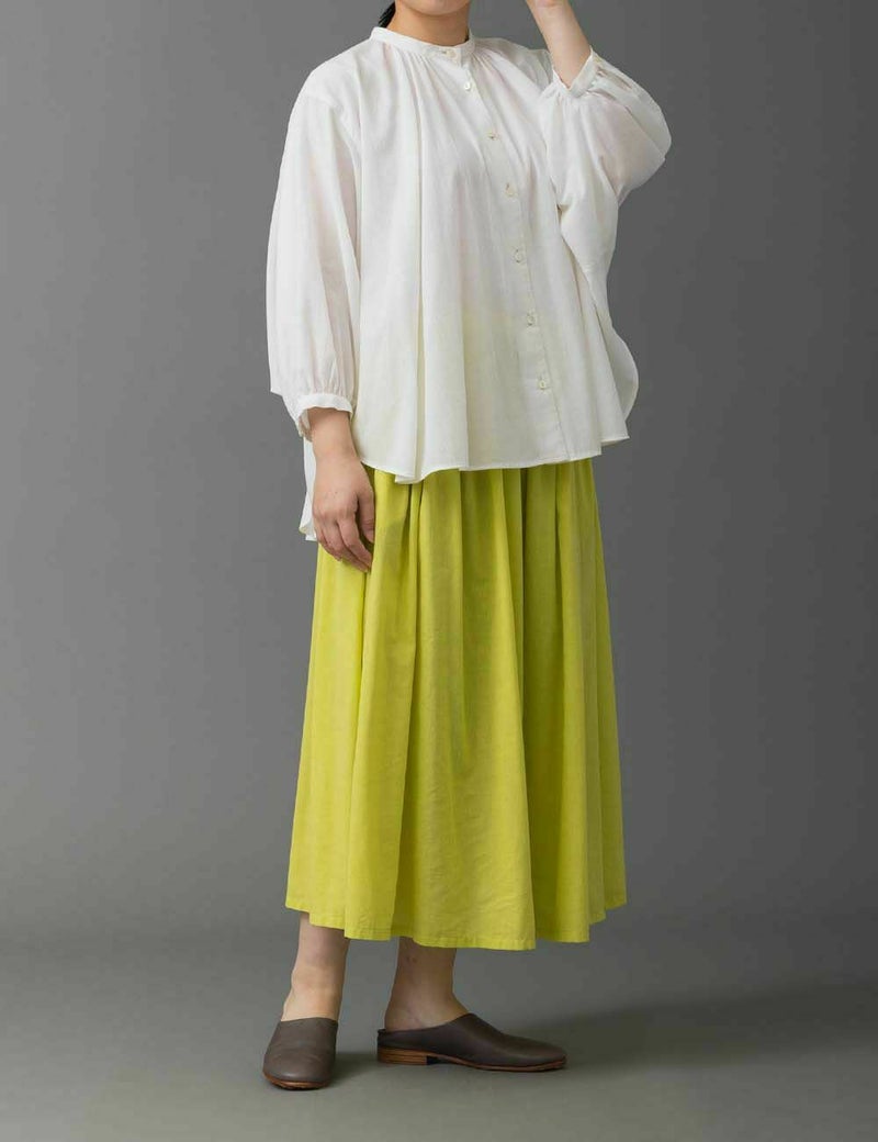 デリケートな薄手生地を贅沢に使ったふんわりギャザースカート。歩くたび軽やかに揺れる生地が、美しい陰影とともに、春らしい華やぎを演出します。