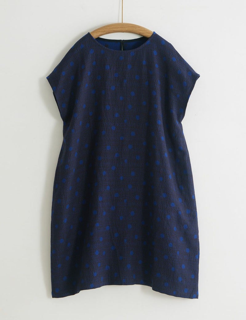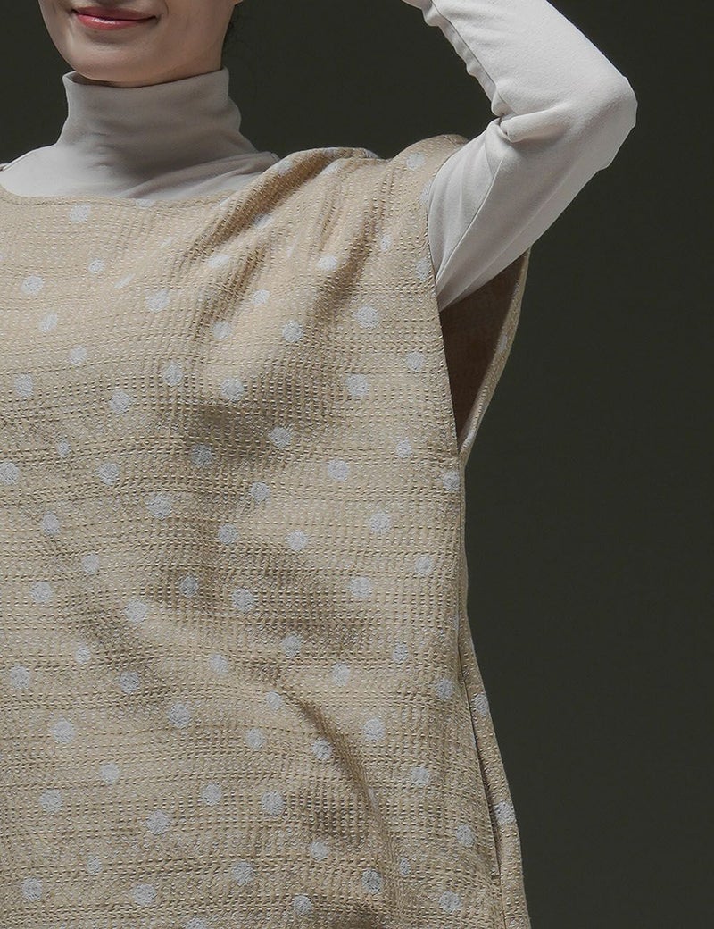 シンプルなボックスシルエットで仕立てたチュニック。一面に刺子をほどこしたようなドット柄は、ふっくらとしたぬくもりと大人の可愛らしさを感じさせます。おうちでのくつろぎタイムからお出かけまで、多彩なシーンで活躍します。
