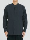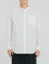 手紡ぎのような風合いを持つ「逆スラブ糸」を織り上げてバンドカラーシャツに。味わい豊かな織りが、シンプルな白シャツ姿を格上げしてくれます。M・Lの2サイズが揃って、女性がオーバーサイズで羽織っても素敵です。