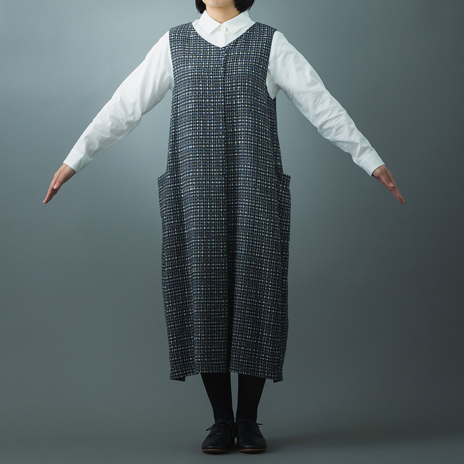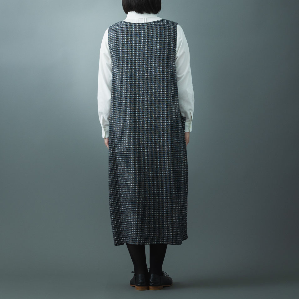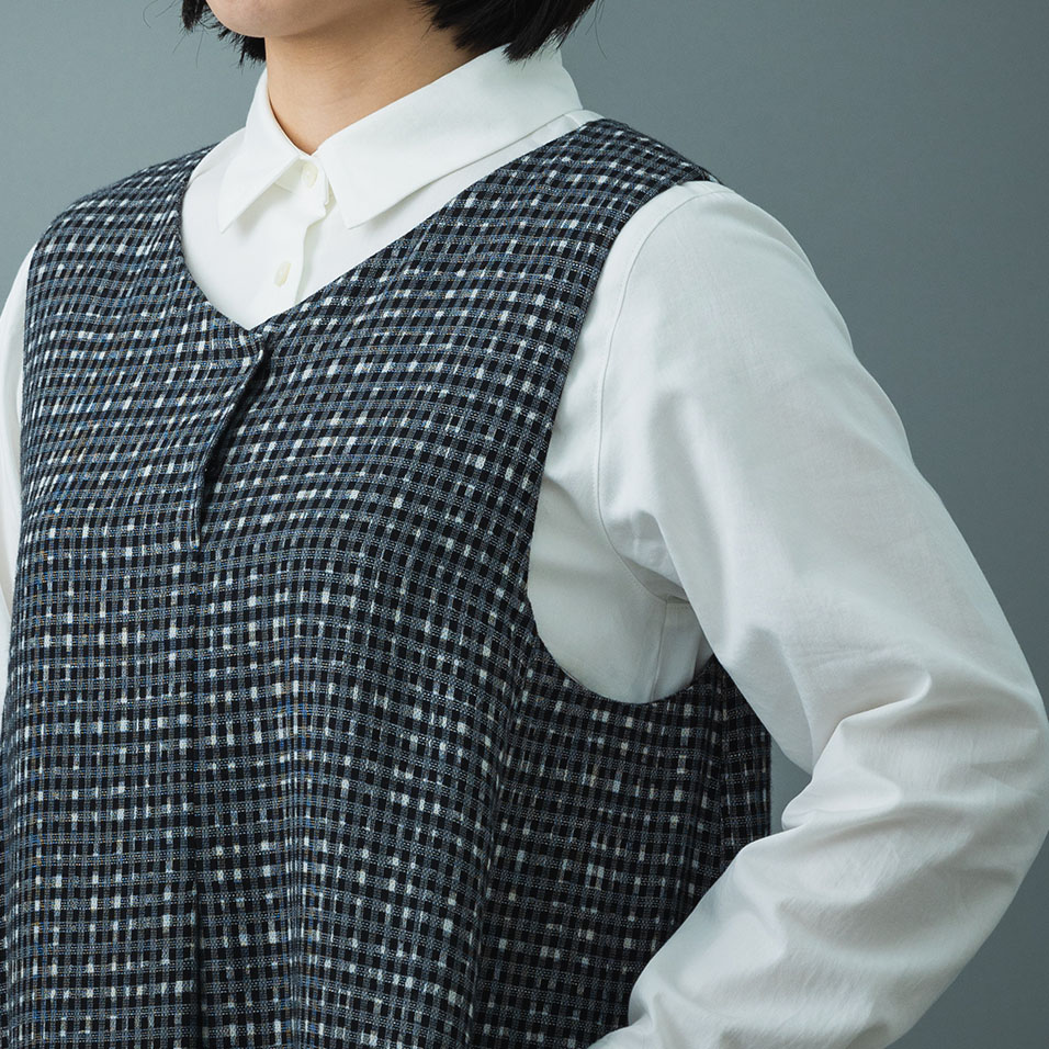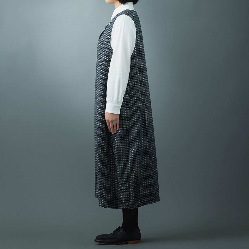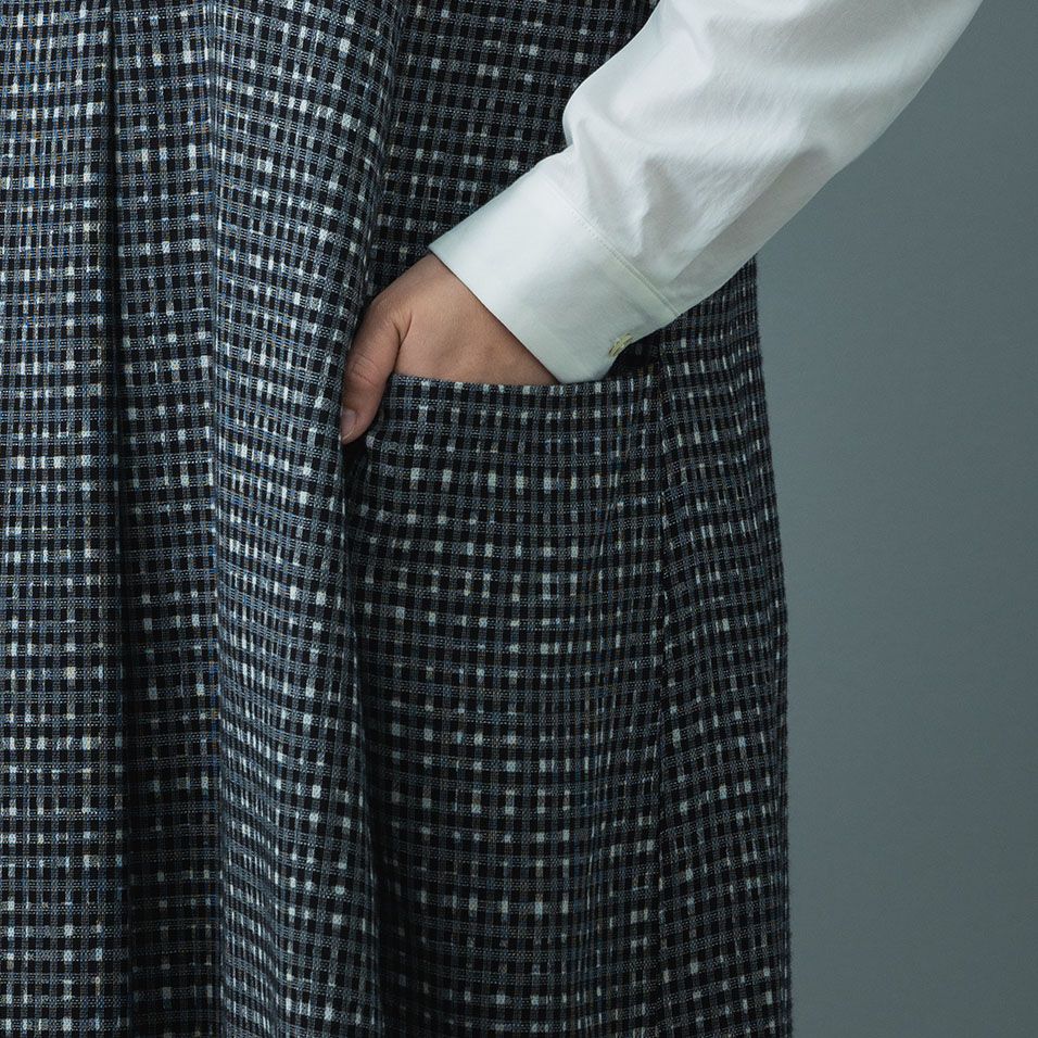 マンガン絣ギンガム水玉 ワンピース沢鵯(さわひよどり)