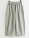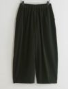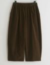 丸くふくらんだたっぷりとしたシルエットで、足のラインを感じさせません。裾も広めでワイドパンツ感覚ですが、ボリュームを抑えたシルエットですので、どなたにも履きやすいのもうれしいポイントです。細かい畝のコーデュロイ生地なのでカジュアルになりすぎず、上品な雰囲気です。