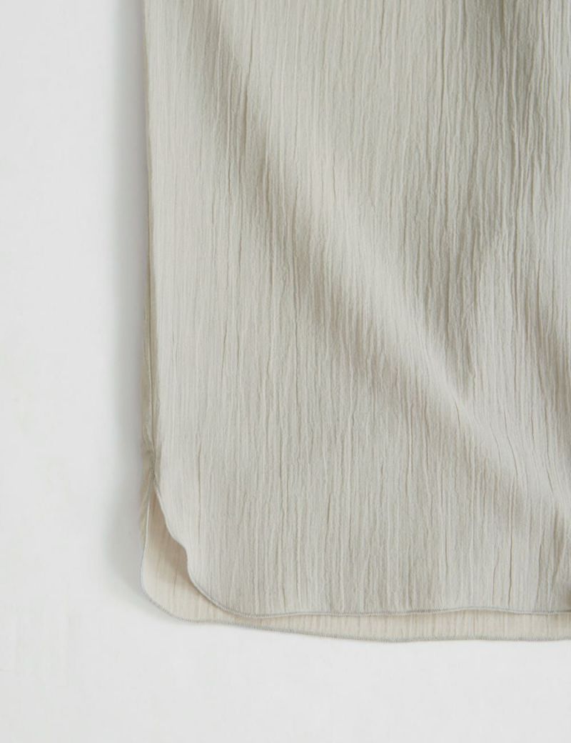 群言堂が長年つくり続けているロングセラー。繊細な極細糸を縦シボのある風合いに織り上げた楊柳生地は、肌にはりつかないさらっと触感が魅力。表面にシルクプロテイン加工をほどこして、やさしいなめらかさを与えました。薄く軽く、乾きやすさも抜群です。