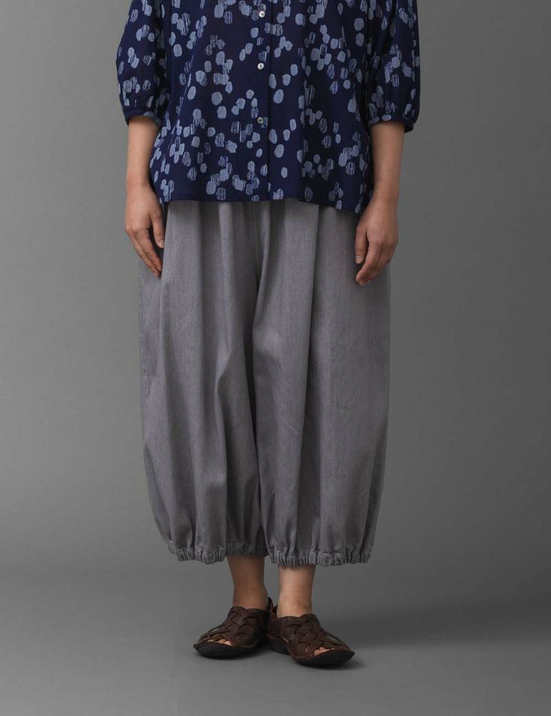 しなやかデニムで可憐に魅せるバルーンパンツ。