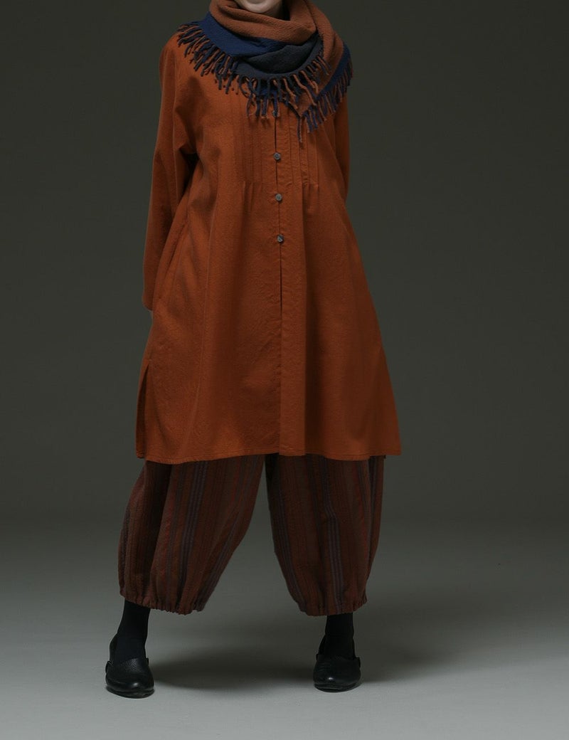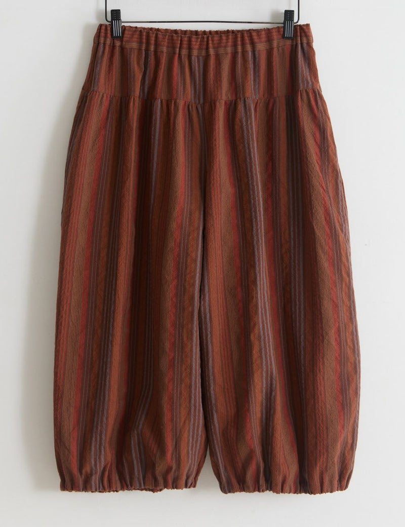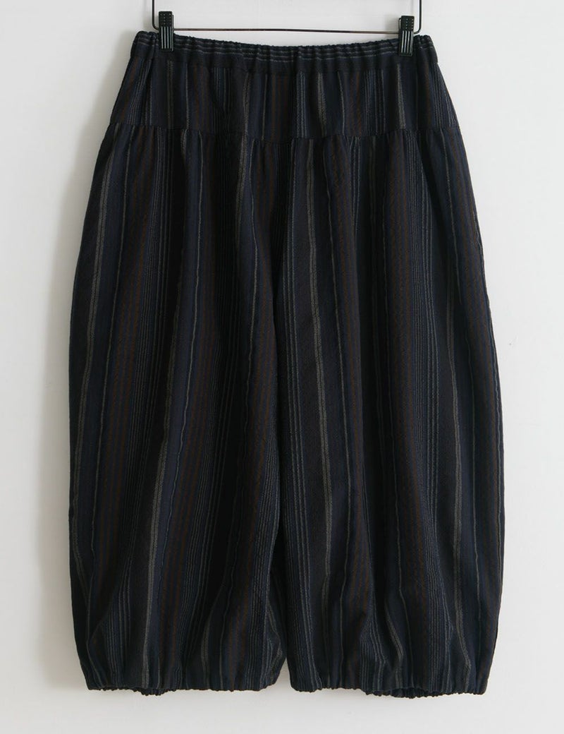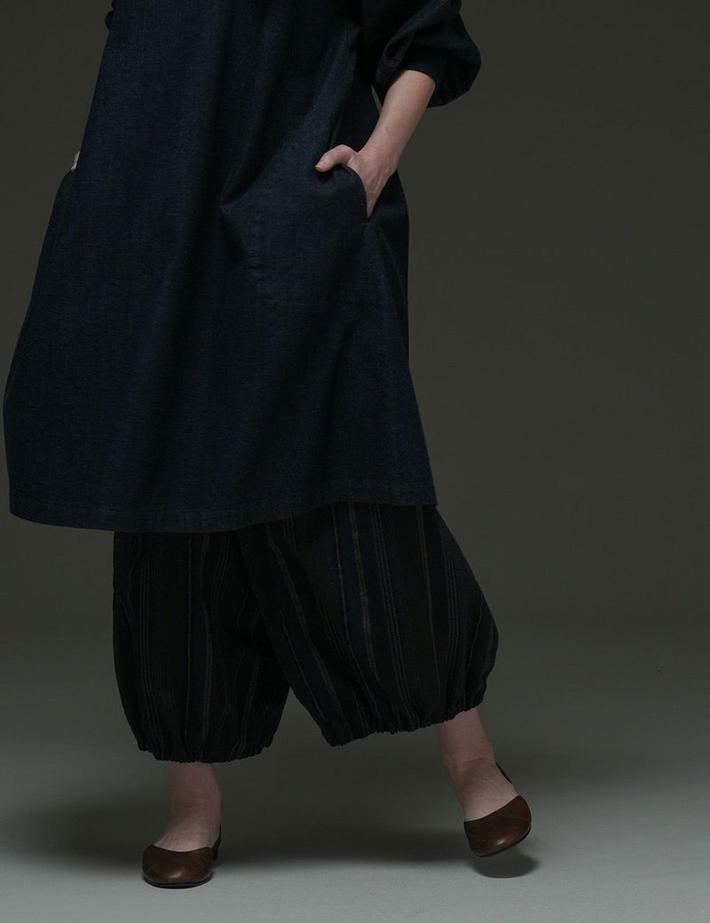 渋い色味の縞柄生地で仕立てた、ボリューミーなバルーンパンツ。はっと人目を惹きつける個性があり、着こなしの主役にうってつけ。体型悩みを隠して、着姿に自信を与えてくれそうです。背の高い方におすすめのMトールサイズもラインナップに加わりました。