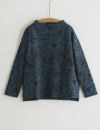 波打ち際ではじける水の泡をイメージした繊細なカットソー生地。なめらかで毛羽立ちの少ない糸を使用して、細かいゲージに編み上げました。柄部分に編み込まれた綿糸とウール糸が、色も質感も異なるニュアンスを醸し出して、表情に奥行きを与えています。