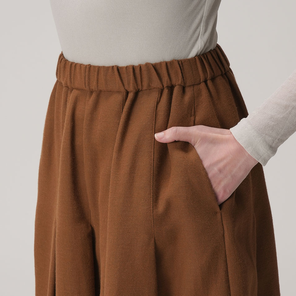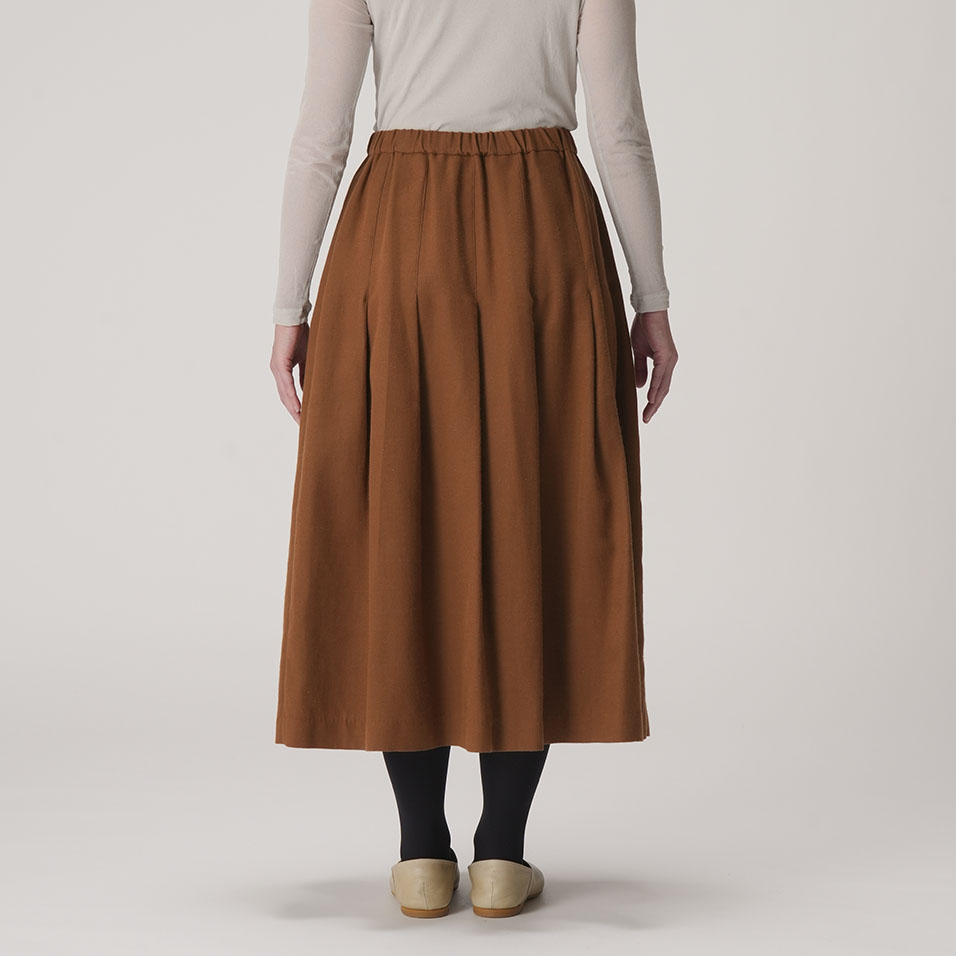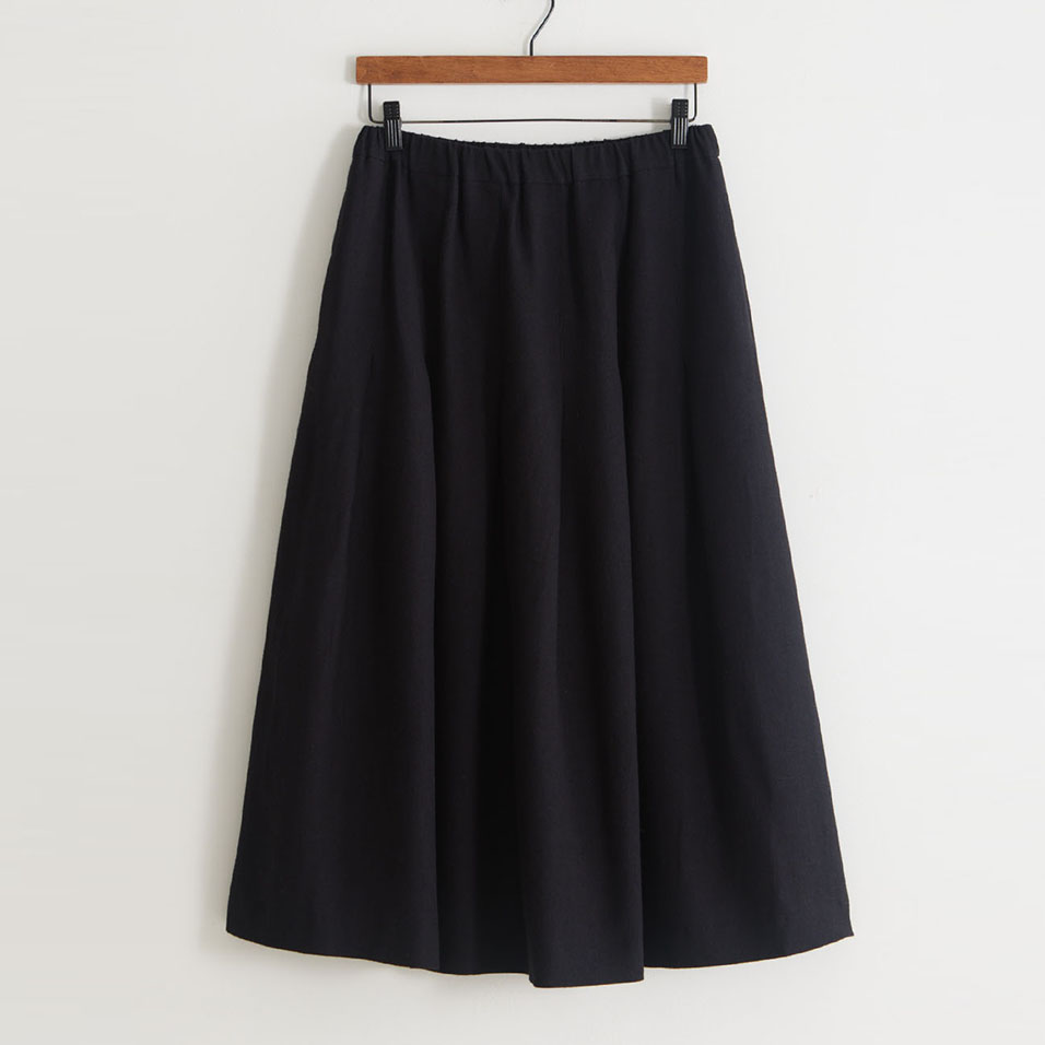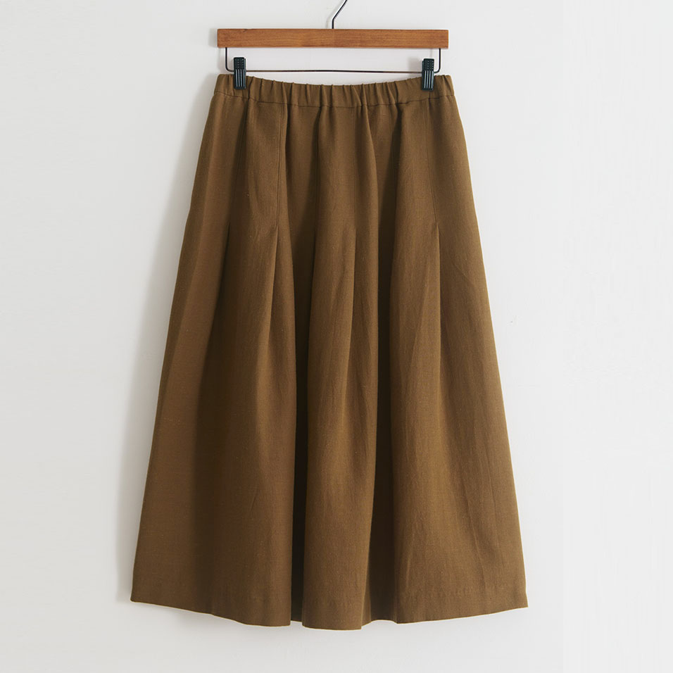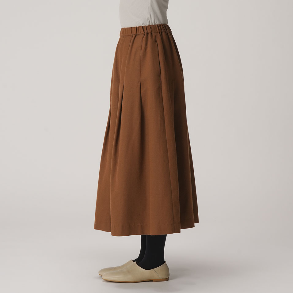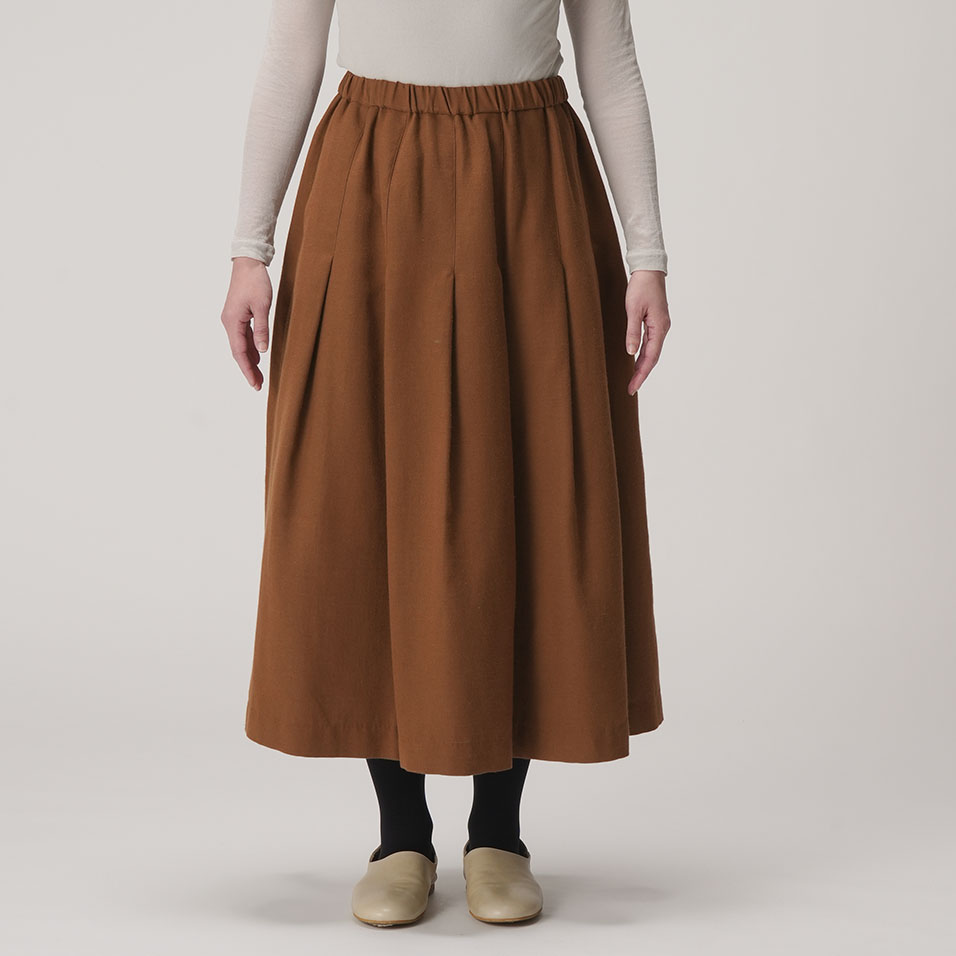 打ち込みのしっかりした上質な綾織生地の魅力を最大限に生かしたタックプリーツスカート。重さを感じさせず、しなやかに揺れて、どんな着こなしにもよく合います。ほどよいきちんと感があり、一枚持っていれば出番が多くなること間違いなし。