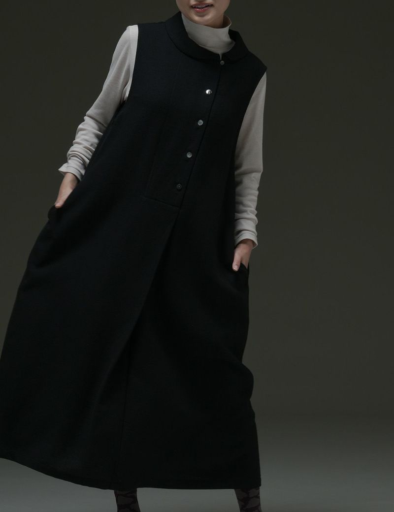 上質な綾織生地でつくった、アシンメトリーなデザインのジャンパースカート。手持ちのインナーに重ねて着るだけで存在感のある着姿を叶えてくれるから、迷った時につい手が伸びる一着になりそうです。着心地が楽でシワも気にならないのが魅力。