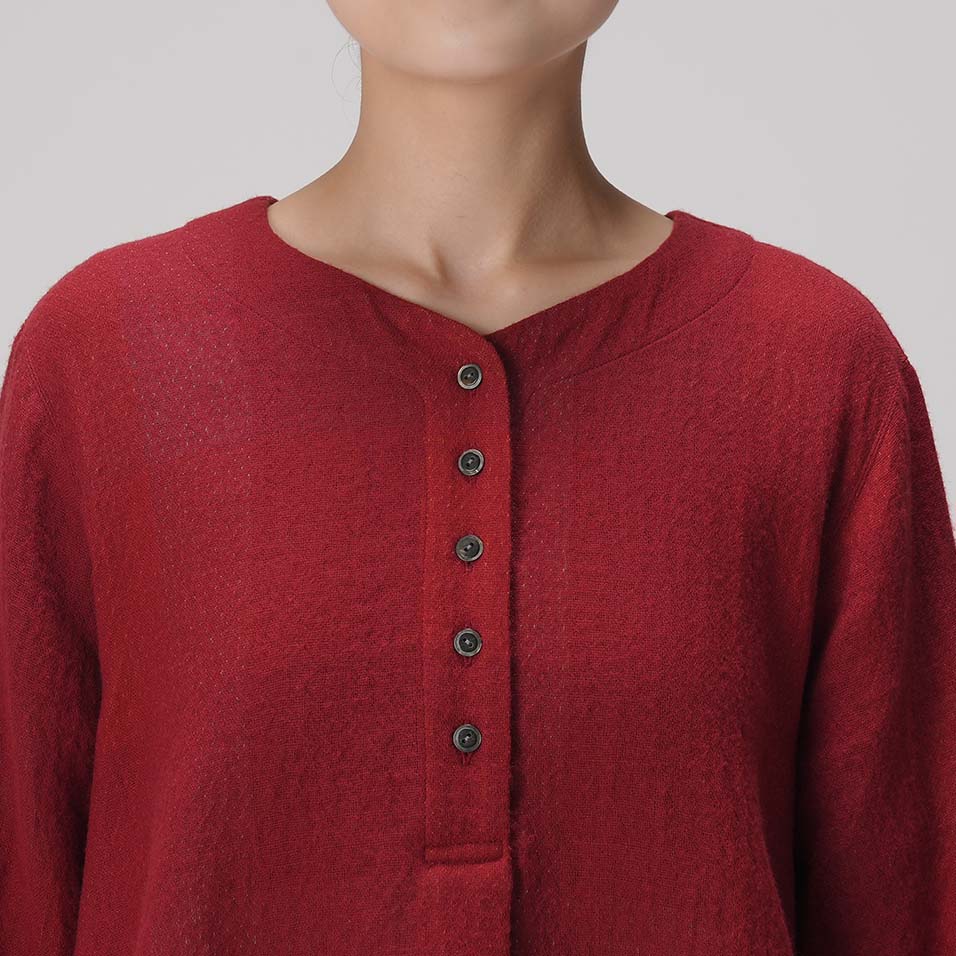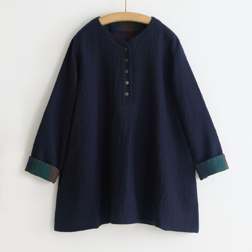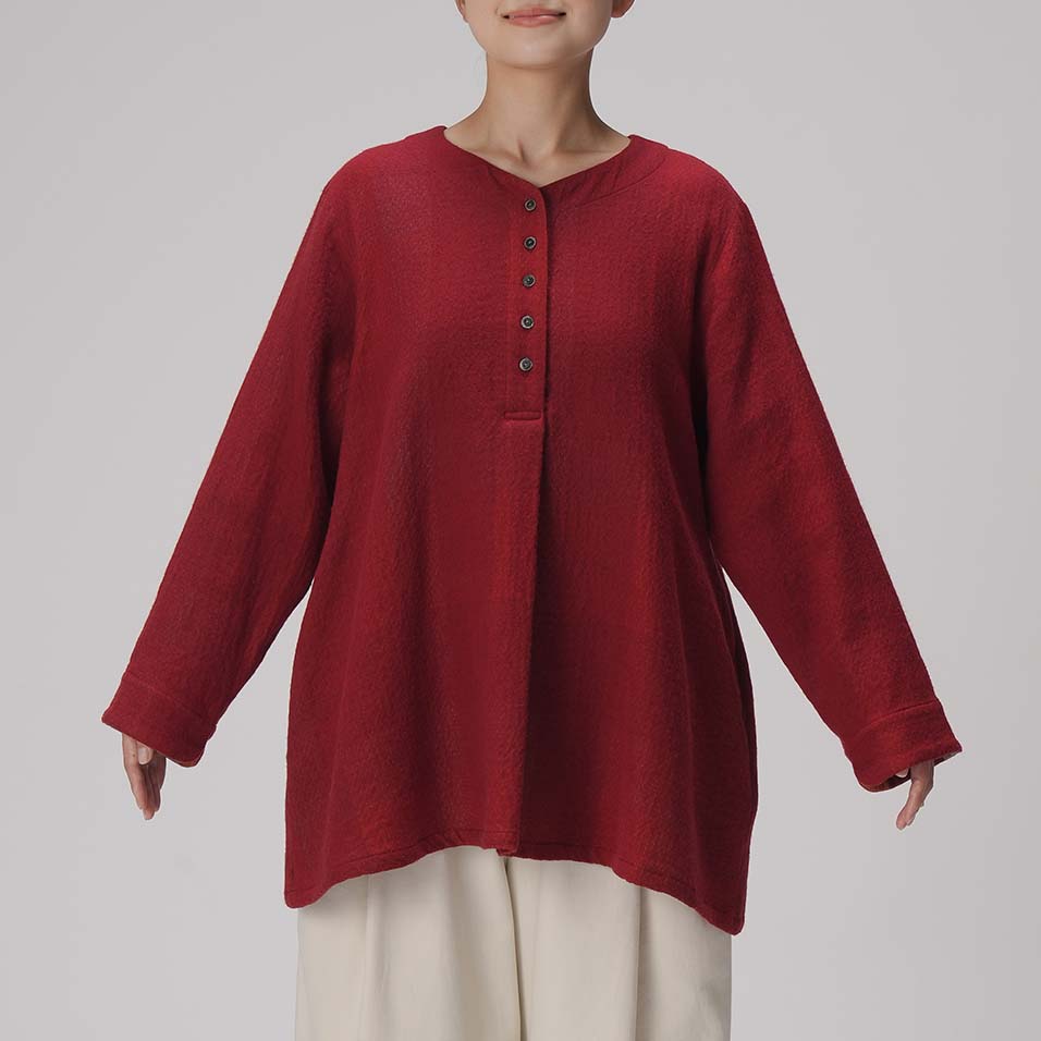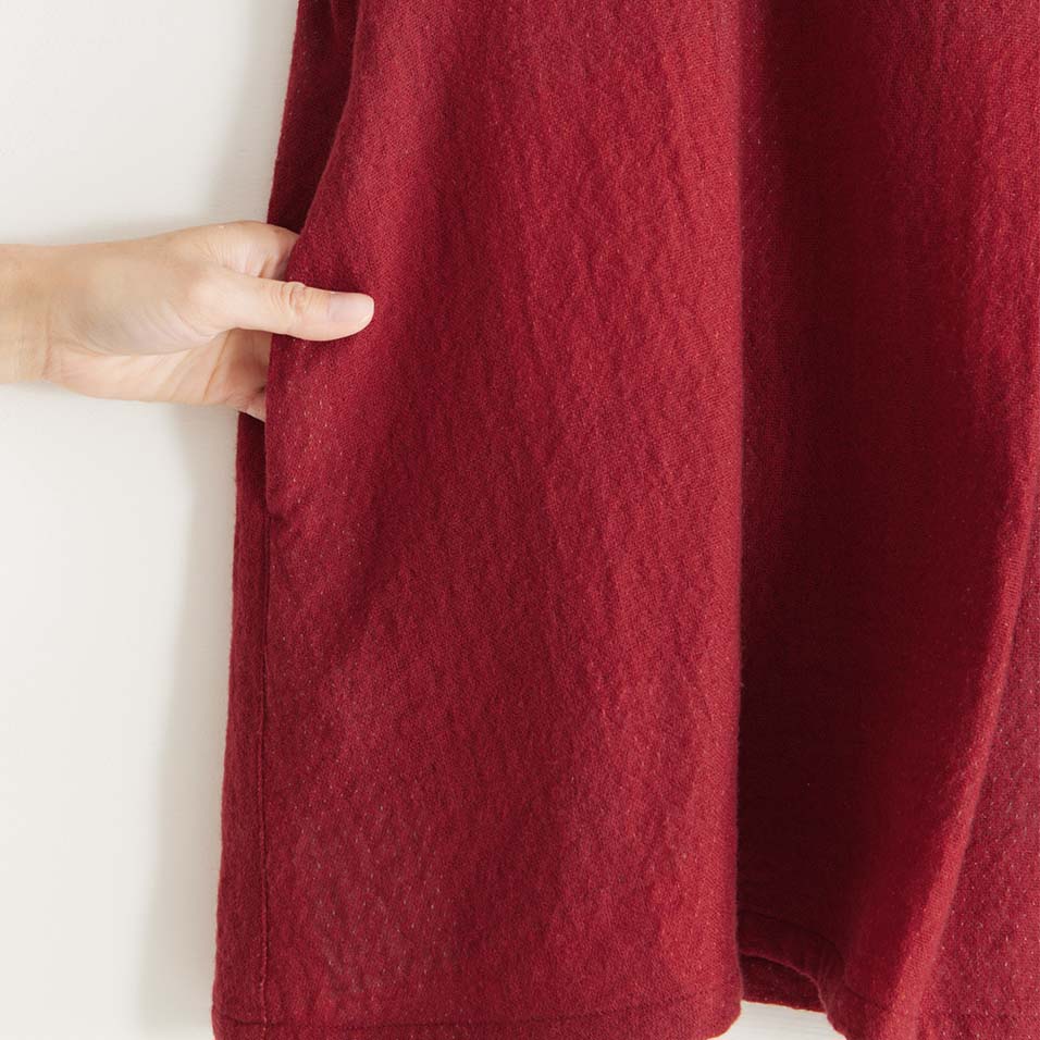 かろやかな綿ウール二重織で仕立てた、腰が隠れる丈のプルオーバー。肌面が綿素材なので、さらりと一枚で着ても快適に過ごせます。寒くなればタートルニットなどの上から重ね着もOK。短冊開きの若々しいスタイルで、活動的に過ごしたい日にぴったりです。