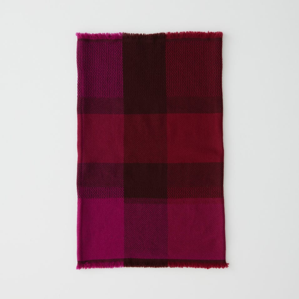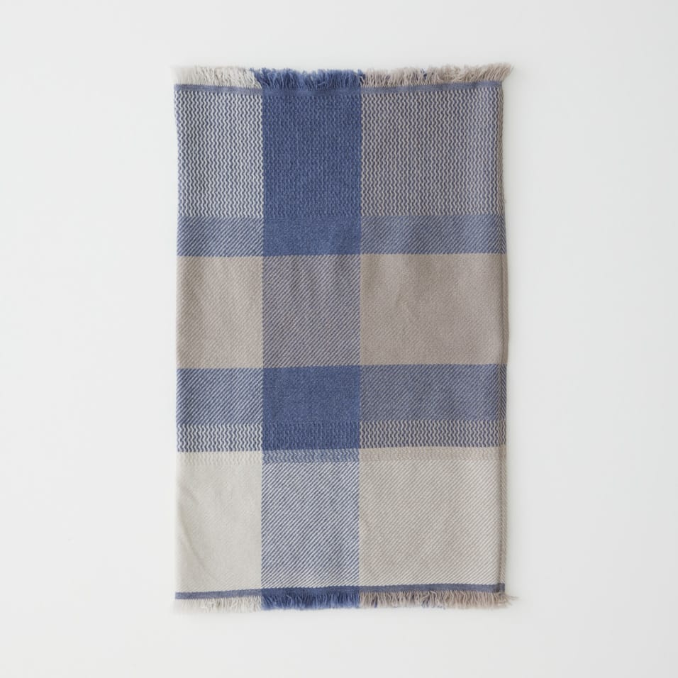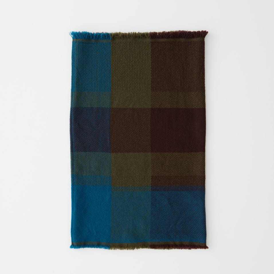 カシミアに匹敵する極細繊維をもつファインメリノウールを使用した贅沢なスヌード。なめらかでしなやかな風合いに、空気をはらんでほっこりあたたか。綾織に変わり織を組み合わせて表現した大胆なブロックチェックは、無造作にまとうだけで絵になります。