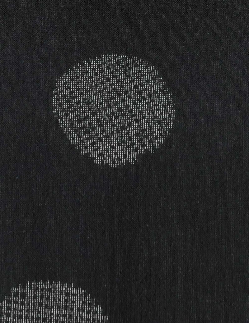 大正時代に一世を風靡した新潟生まれの染絣の技法「マンガン絣」。今や希少になってしまったこの技で、水面に揺らめく影をイメージした柄を描き出しました。綿糸にレーヨン麻の混紡糸を織り合わせた生地は、肌をすべるようにさらっとしなやか。陽光の季節にも上品な涼やかさを醸し出します。