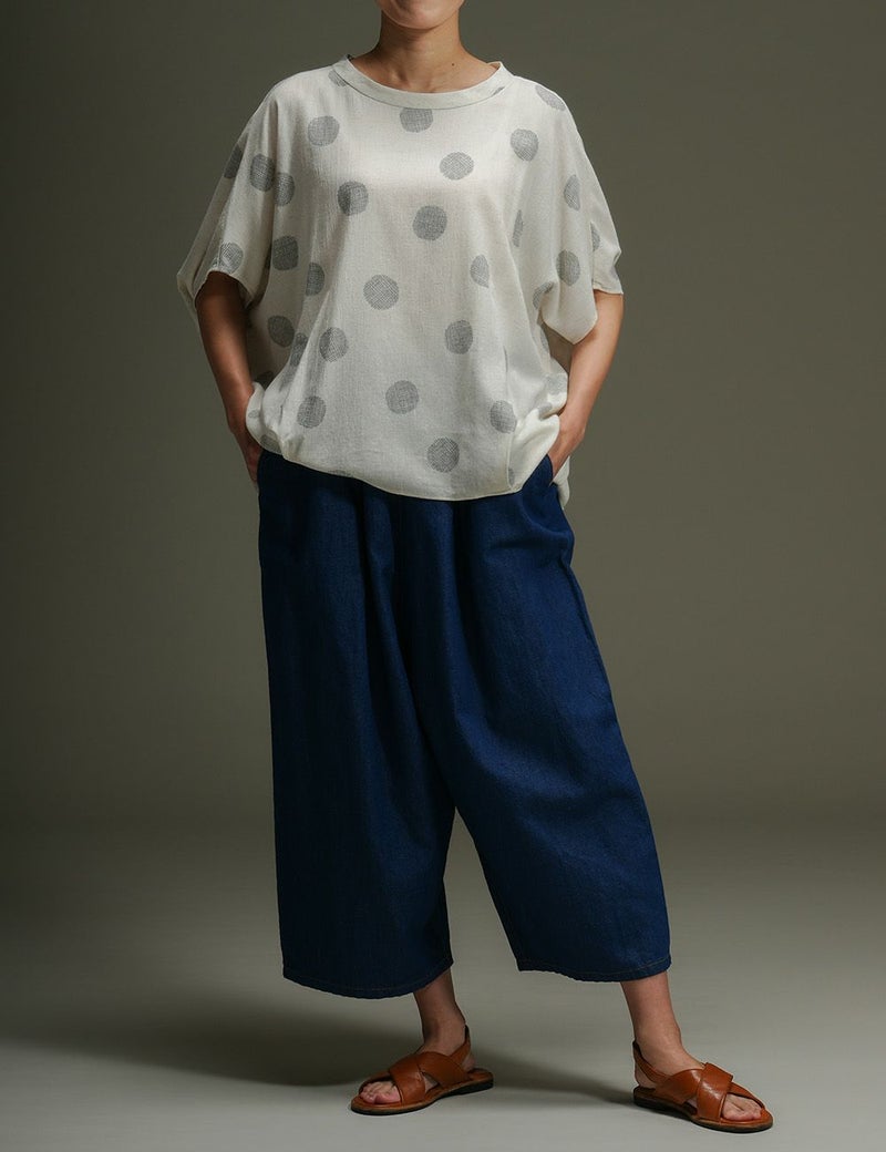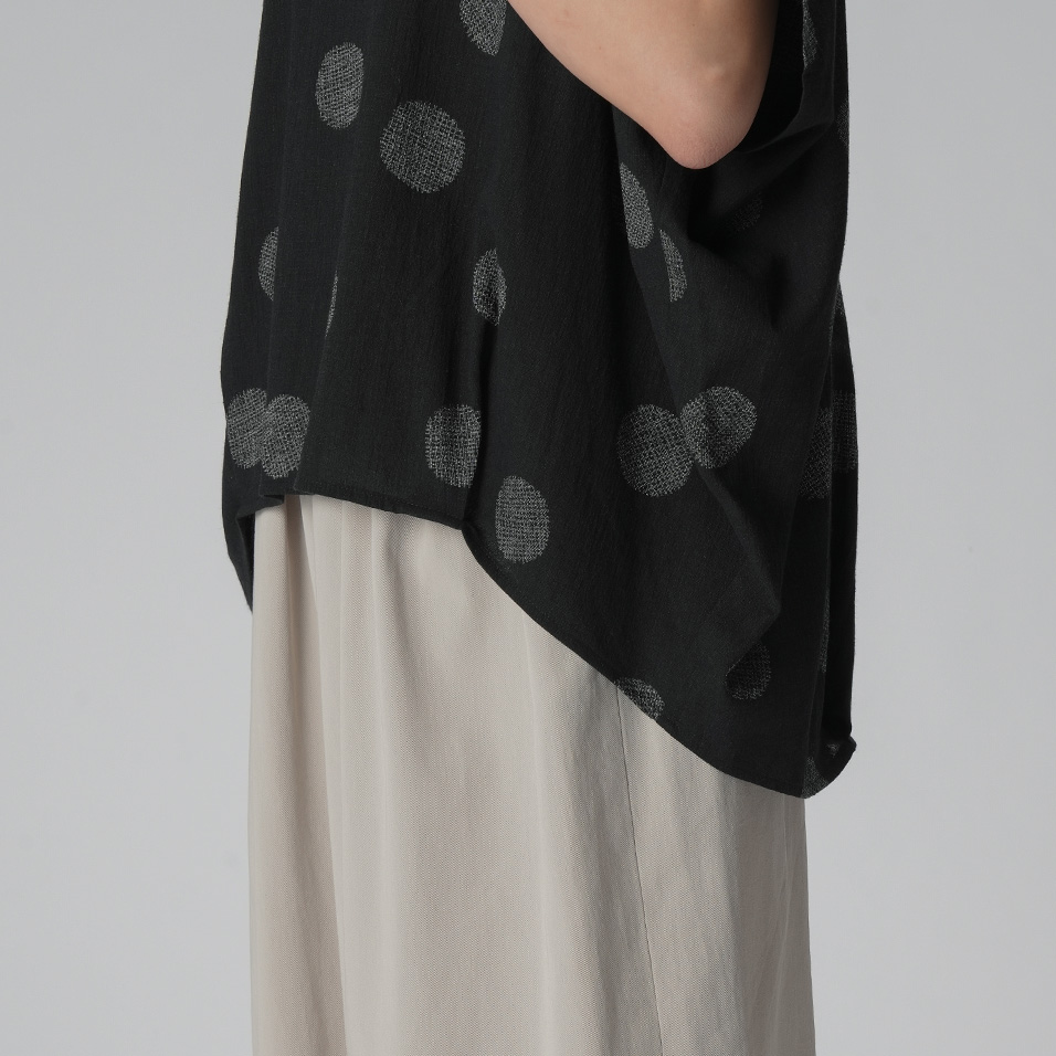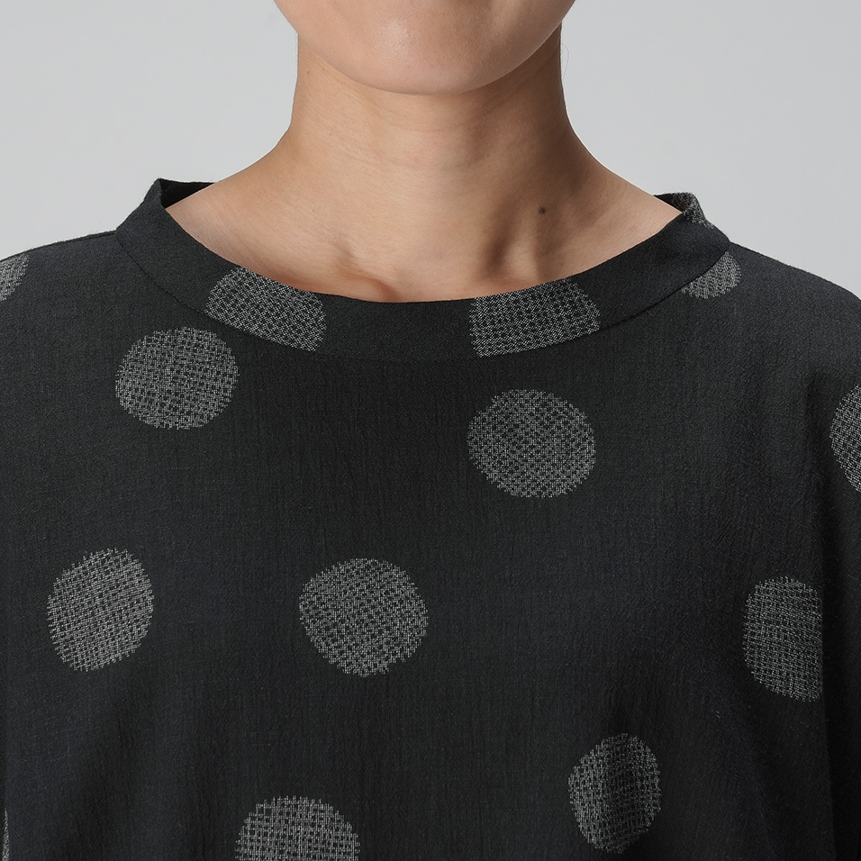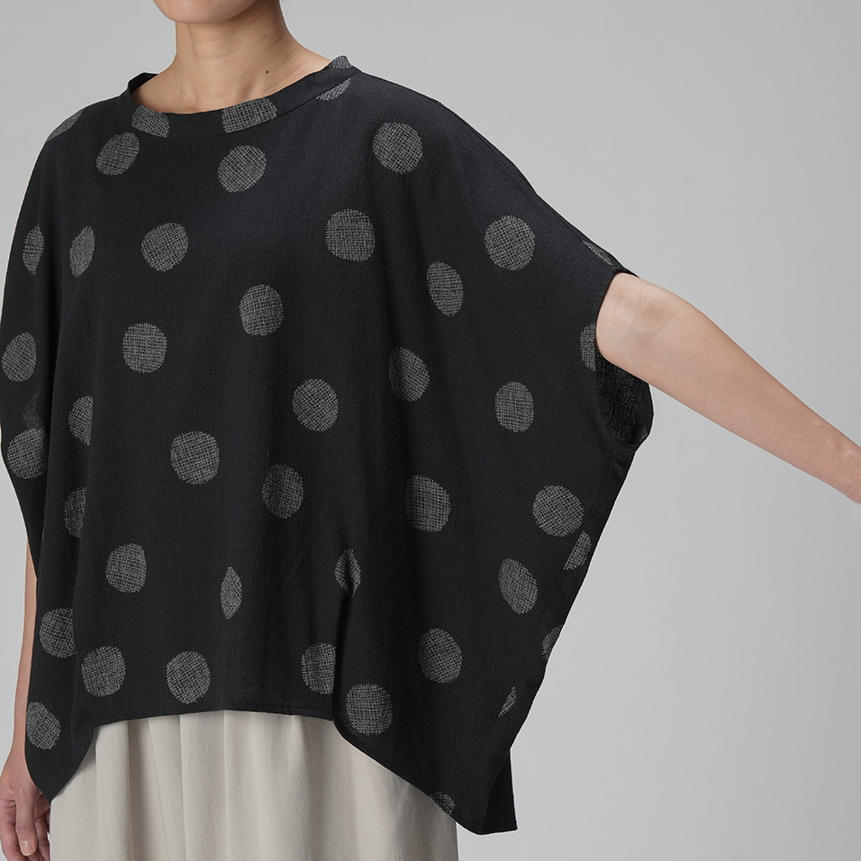 風をはらむビッグシルエットが、華奢見え効果も叶えてくれるプルオーバー。しなやかな涼感素材に「マンガン絣」による繊細な柄が映えて、大人の女性らしさを感じさせます。シンプルな着こなしでも絵になって、つい手が伸びる一枚になりそうです。