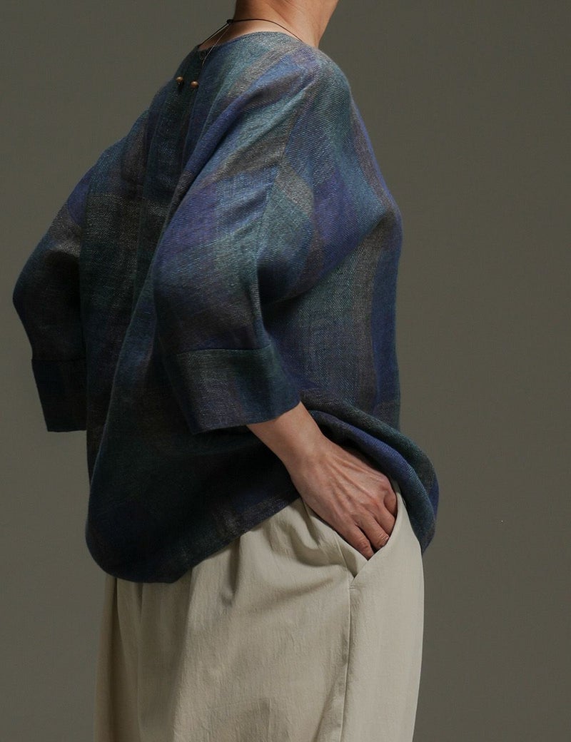 綿麻スペック染マス柄