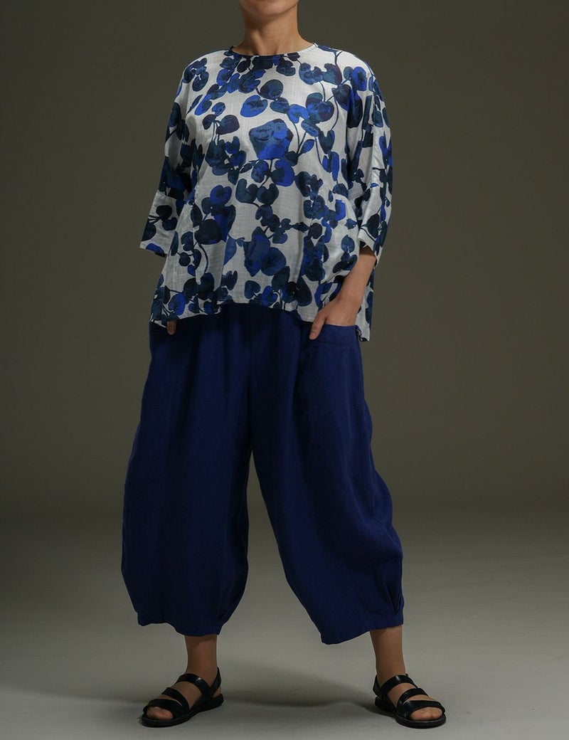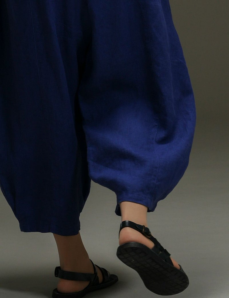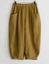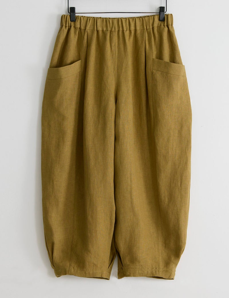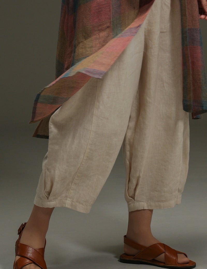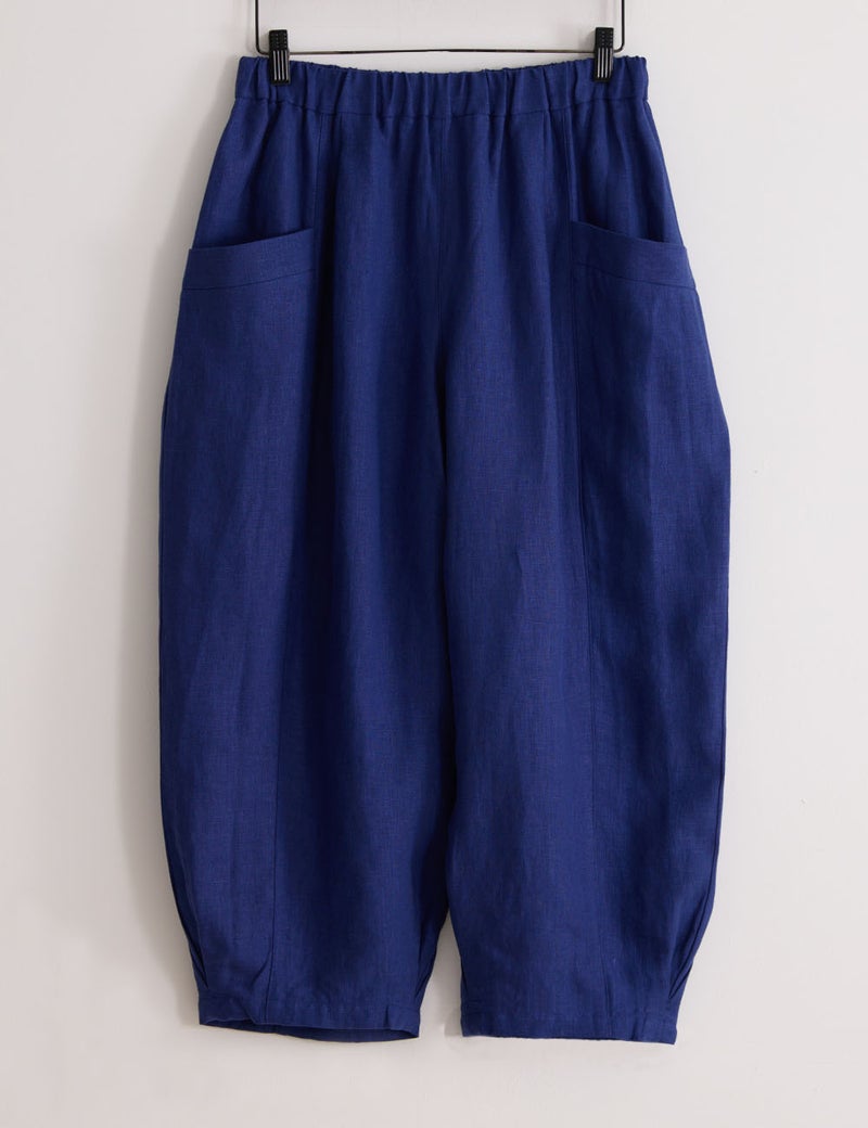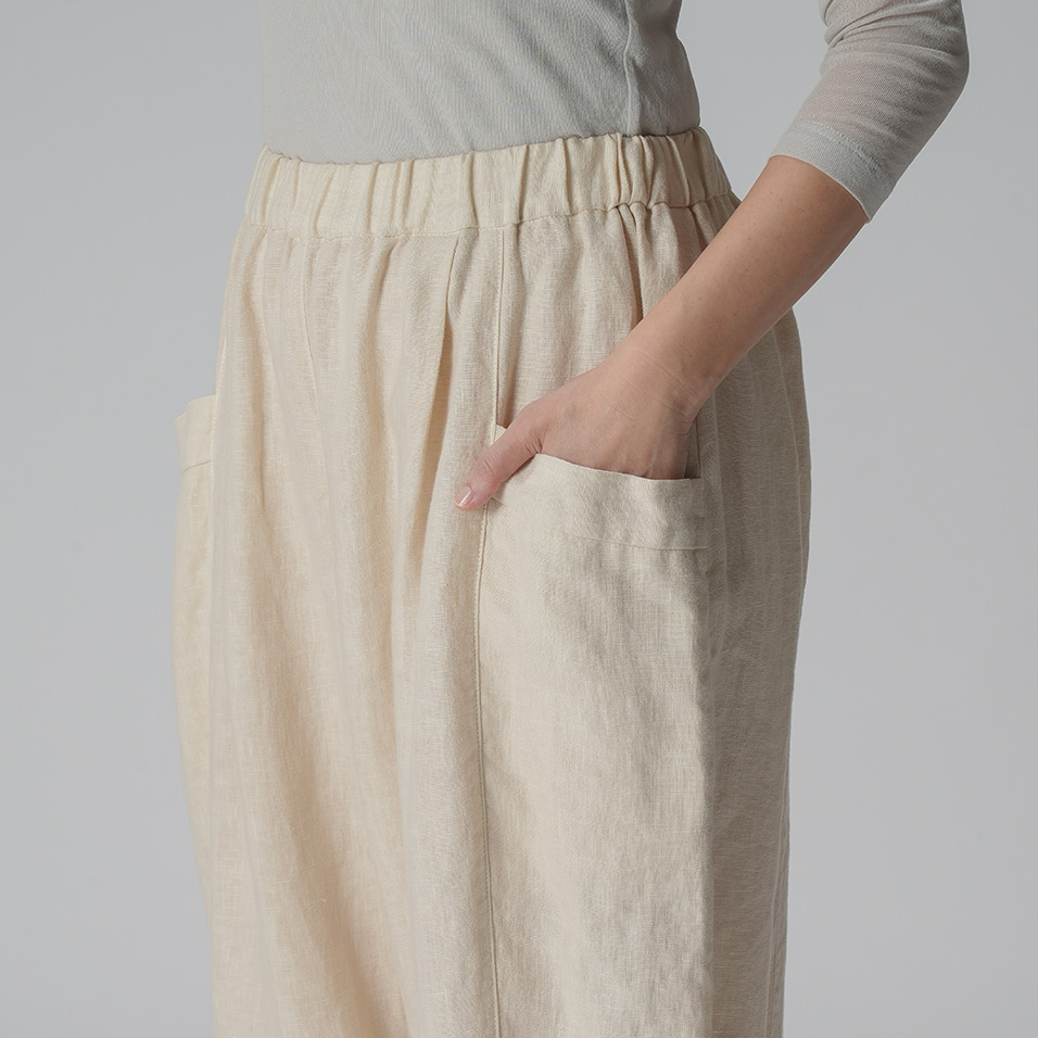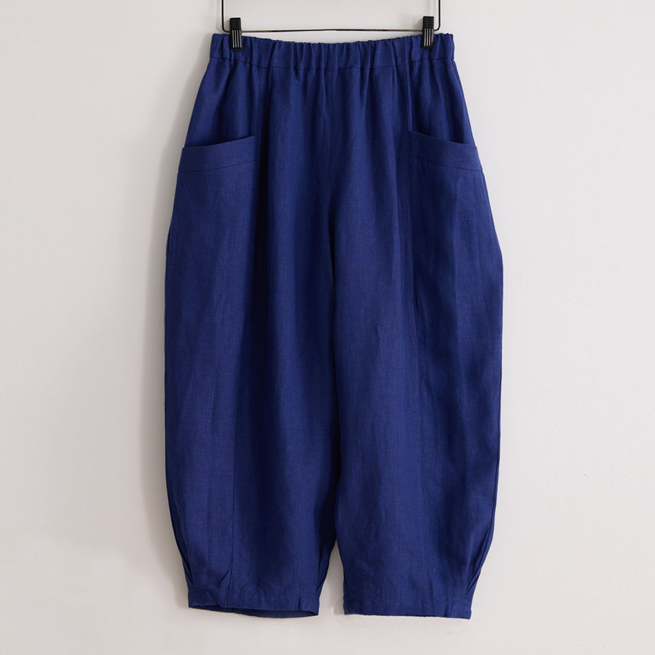 ほどよい肉厚感とやわらかな風合いが心地よいリネンのバルーンパンツ。足首の見えるクロップド丈や、縦に走る切り替え線+サイドポケットの効果で、体型悩みをカバーして、全身バランスをセンスよくまとめてくれます。自信を持って闊歩したくなる一着です。