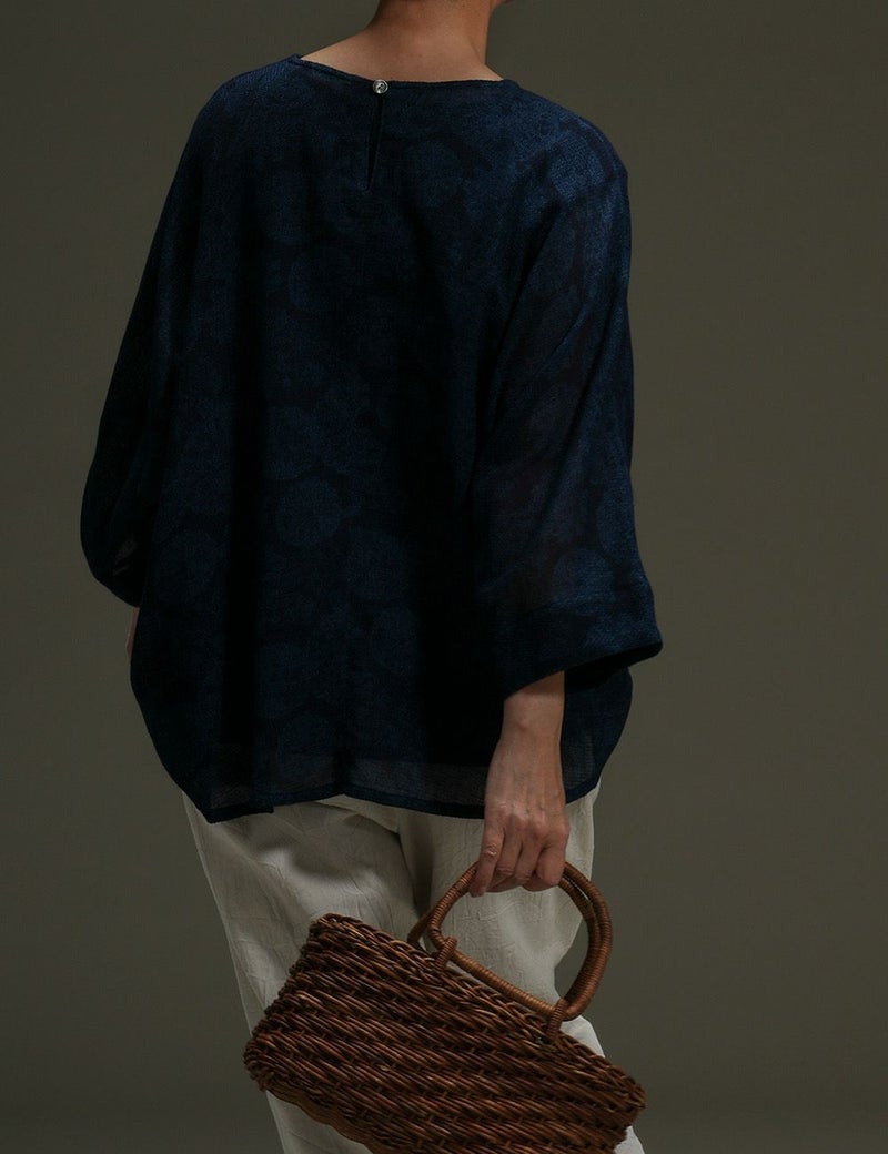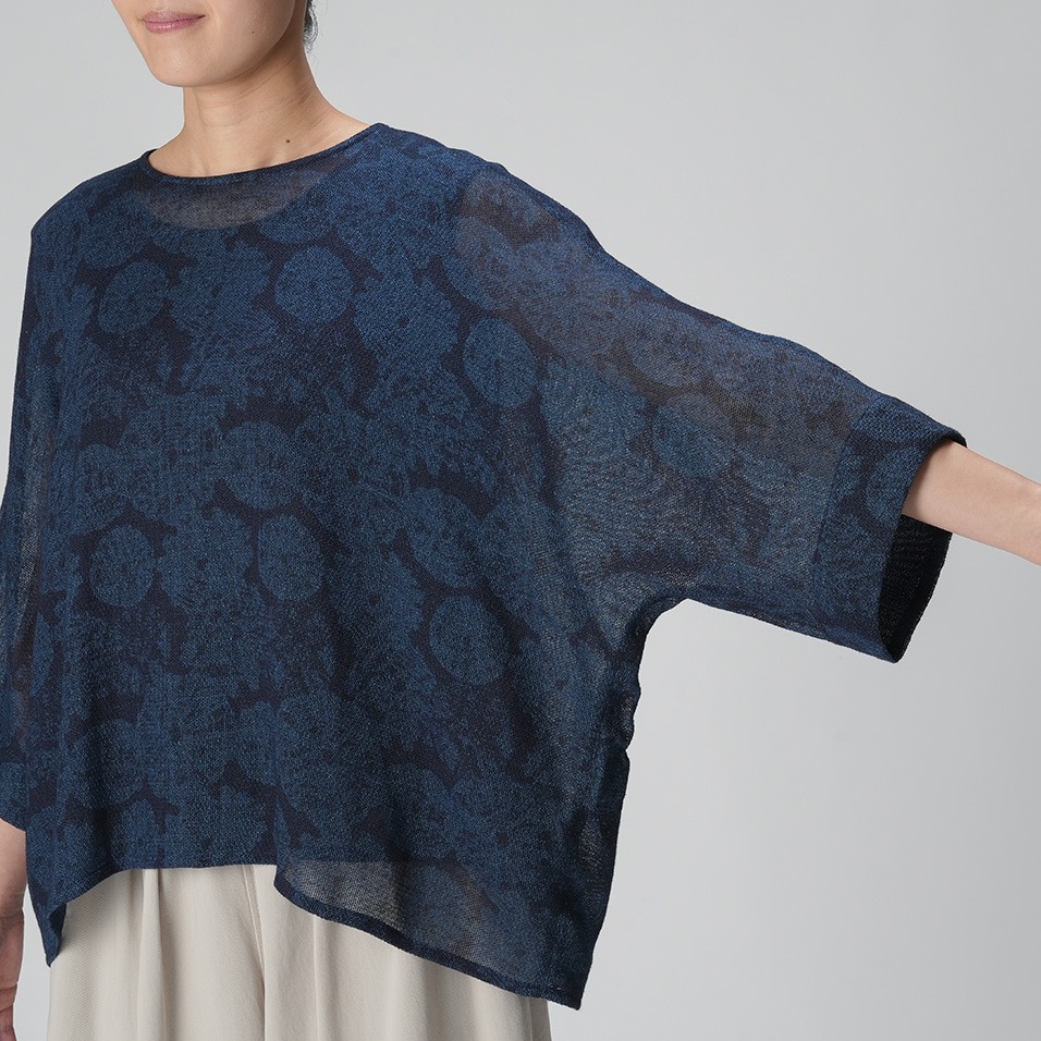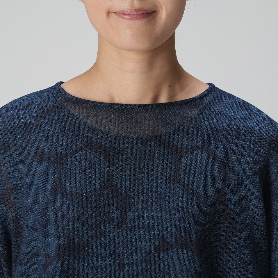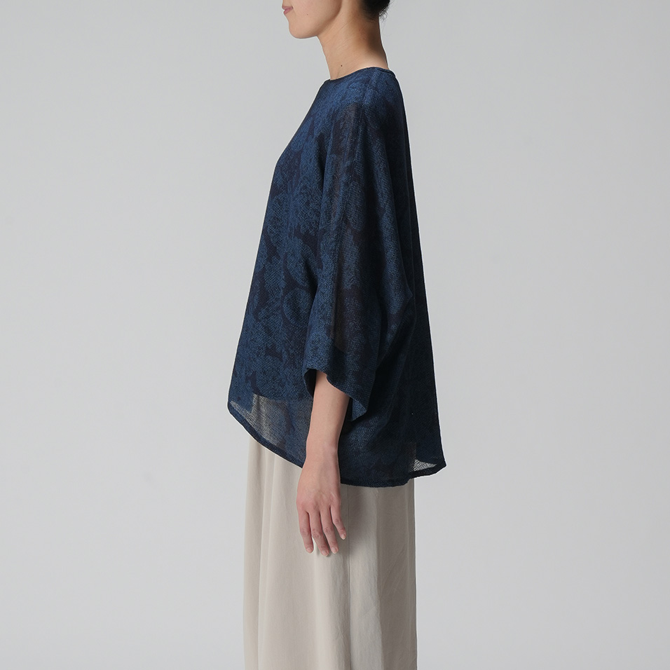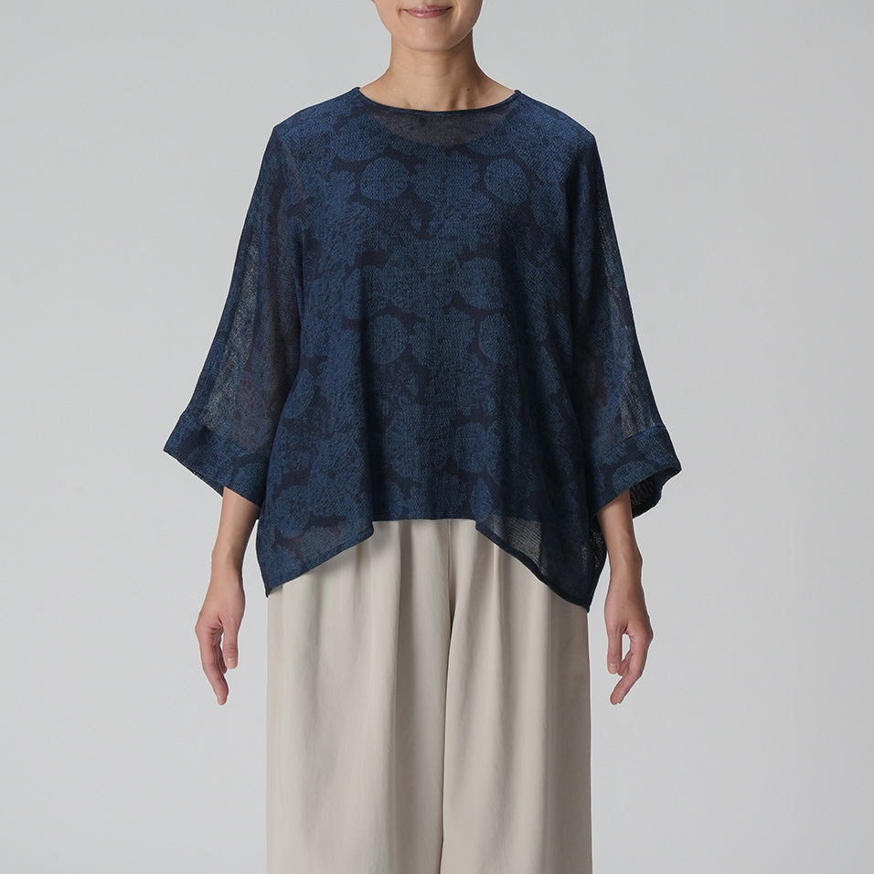 透け感のある生地に、ほのかに浮かび上がるインディゴの濃淡。その涼やかさをシンプルに生かしたプルオーバー。ちょっと通好みな変わり織をデイリーに楽しむ、大人ならではのおしゃれが広がります。綿インナー付きで安心してご着用いただけます。