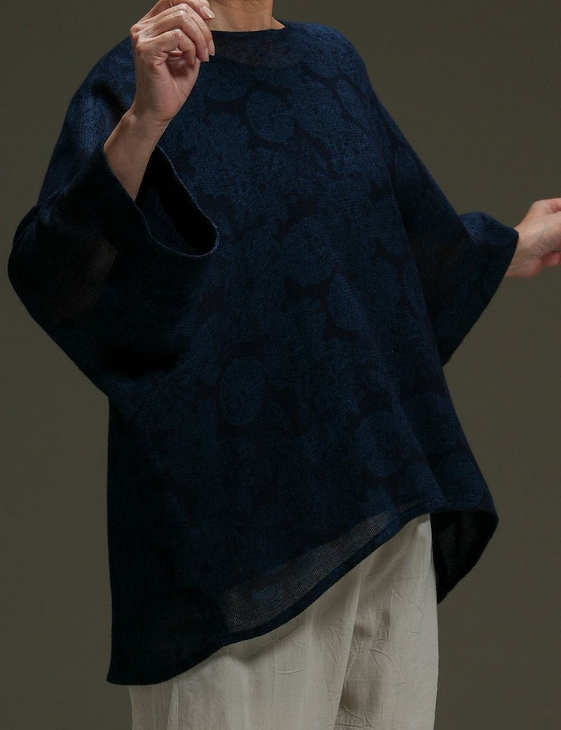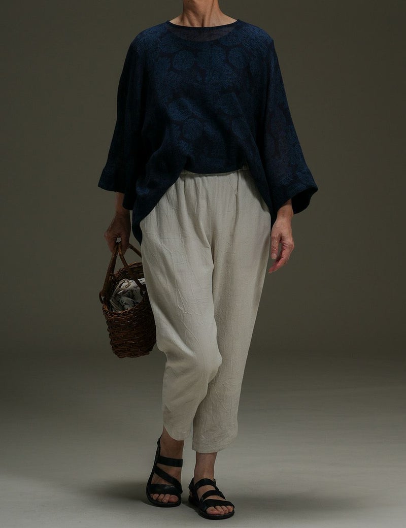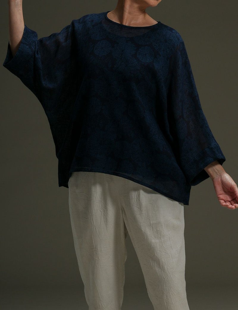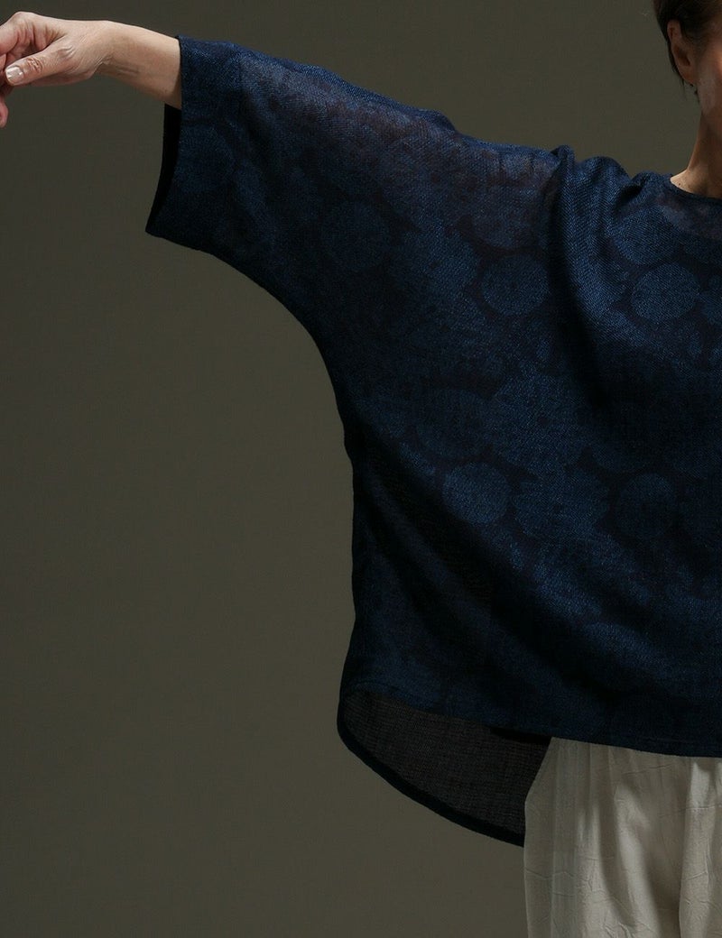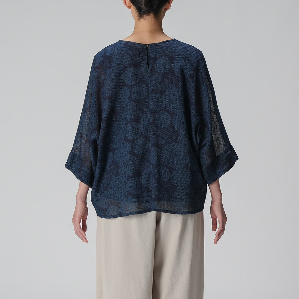 透け感のある生地に、ほのかに浮かび上がるインディゴの濃淡。その涼やかさをシンプルに生かしたプルオーバー。ちょっと通好みな変わり織をデイリーに楽しむ、大人ならではのおしゃれが広がります。綿インナー付きで安心してご着用いただけます。