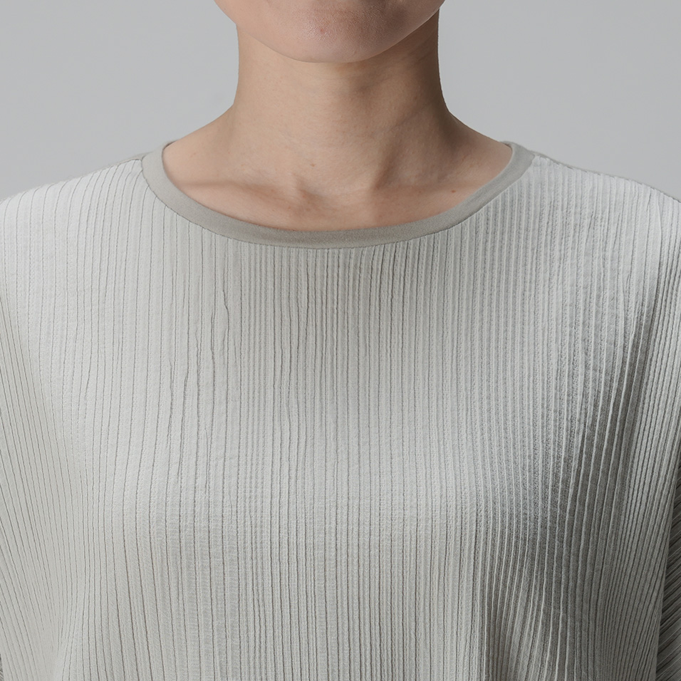 プリーツと天竺の異素材づかいが新鮮。