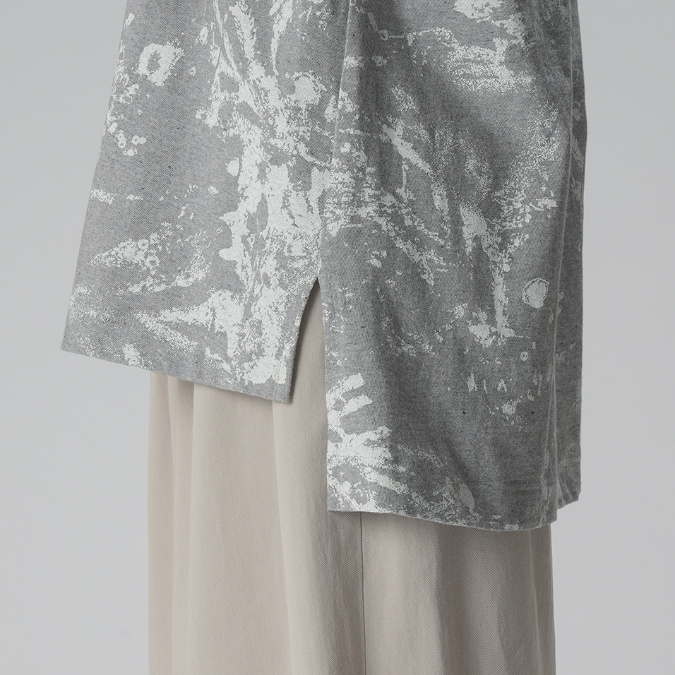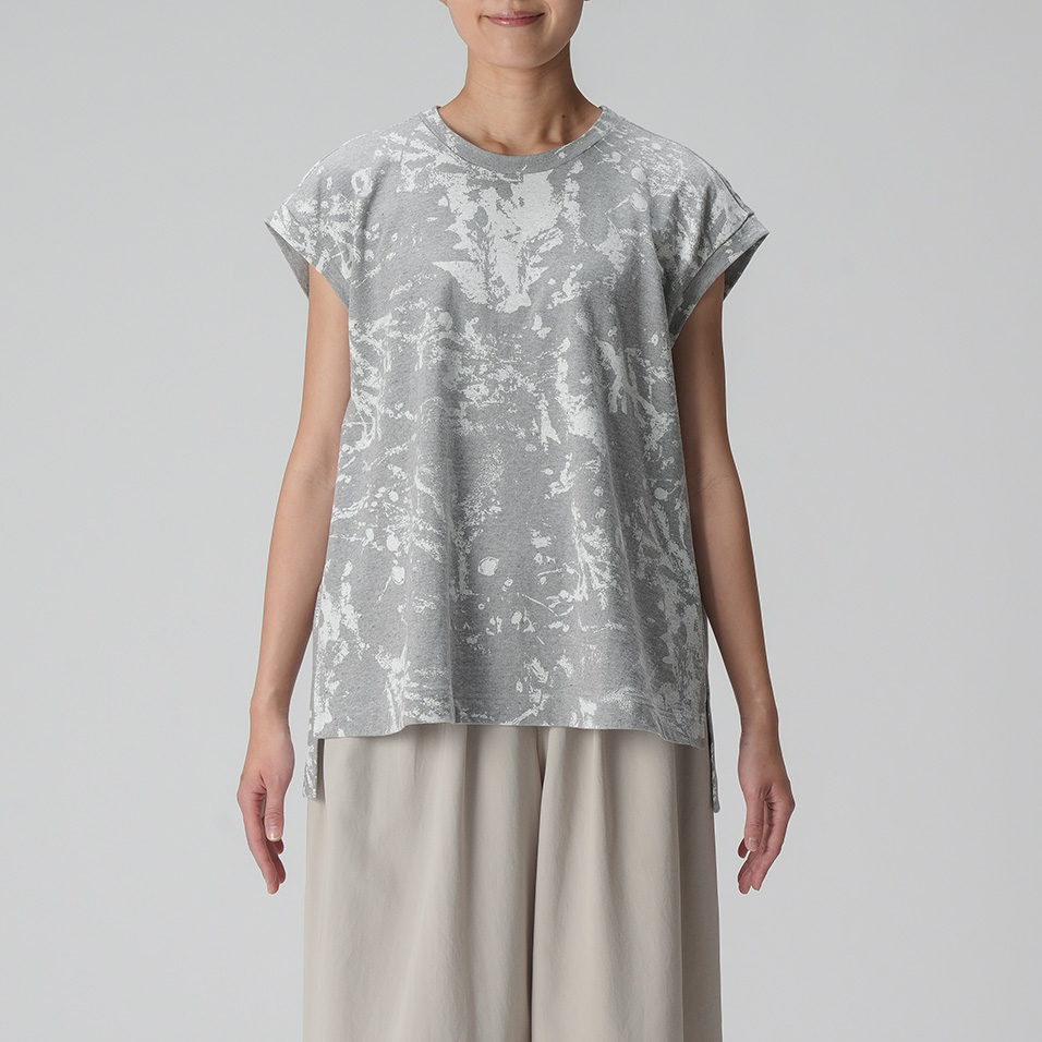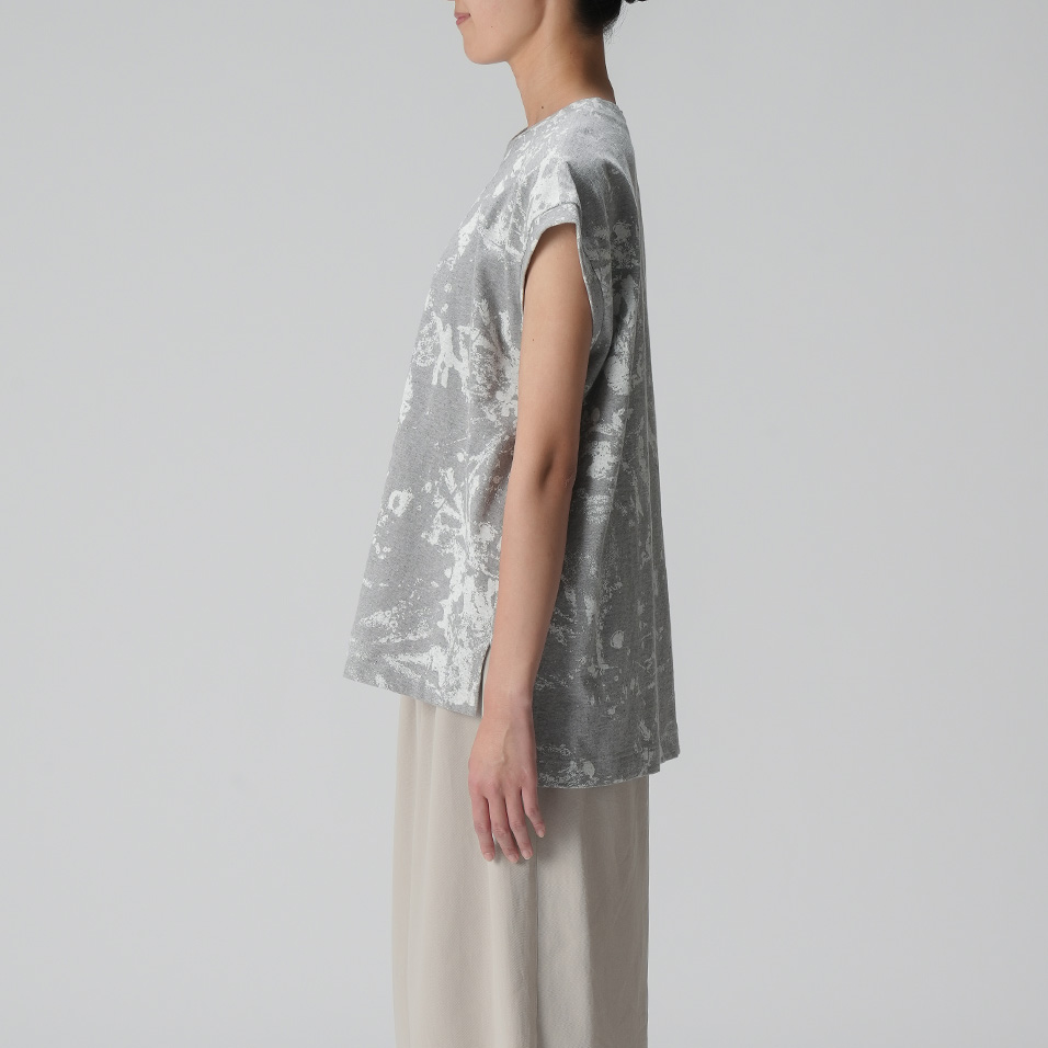 風をはらむビッグシルエットが、華奢見え効果も叶えてくれるプルオーバー。しなやかな涼感素材に「マンガン絣」で、水面に揺らめく影をイメージした柄を描き出しました。