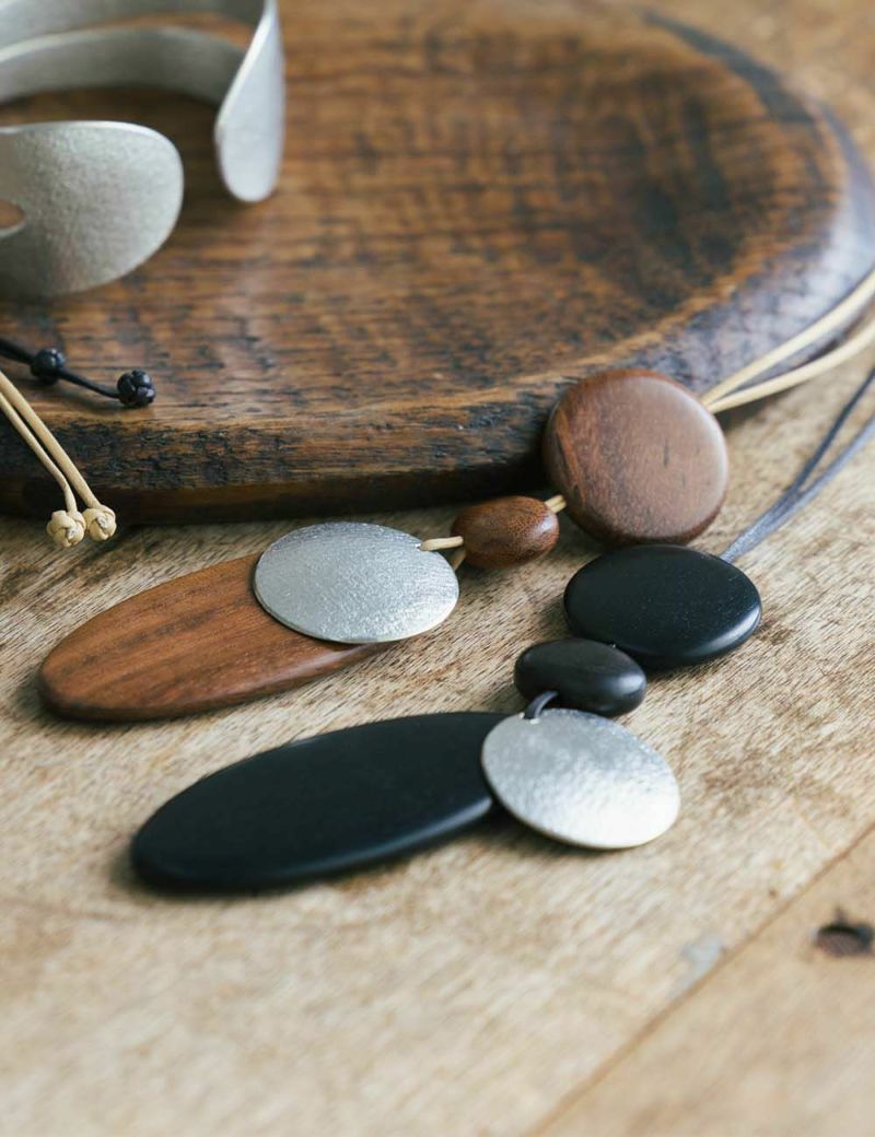 木や水牛の角、金属、天然石などを使って、デザイナー吉川惠子さんがクリエイトするアクセサリーブランド。「自然を磨く」 「自然を身に纏う」をコンセプトとする遊び心のあるアイテムは、里山でつくられる群言堂の衣によく合います。