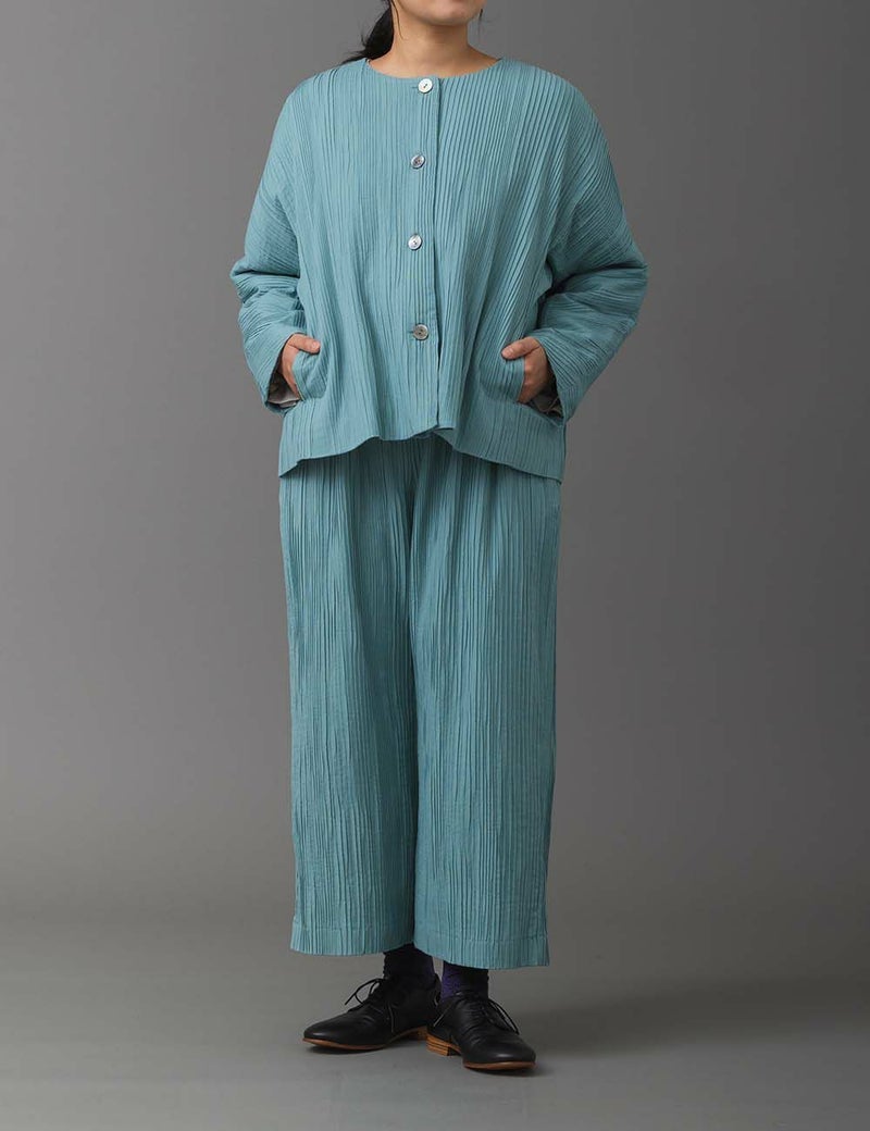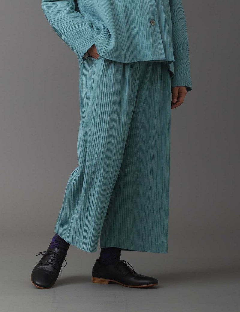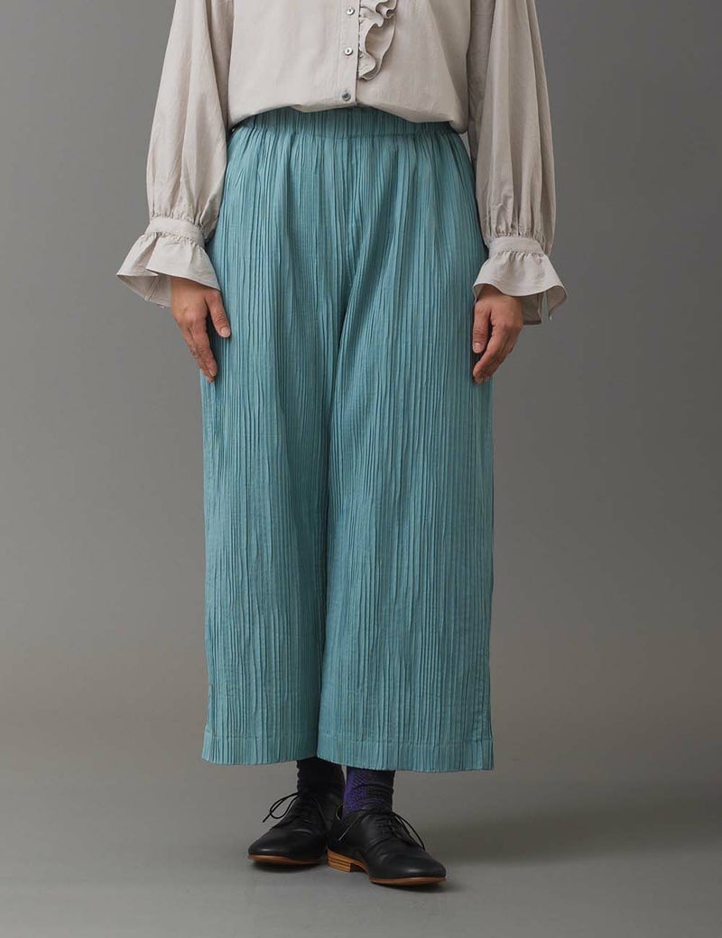 • 綿シルクストレッチプリーツパンツ碇草(いかりそう)