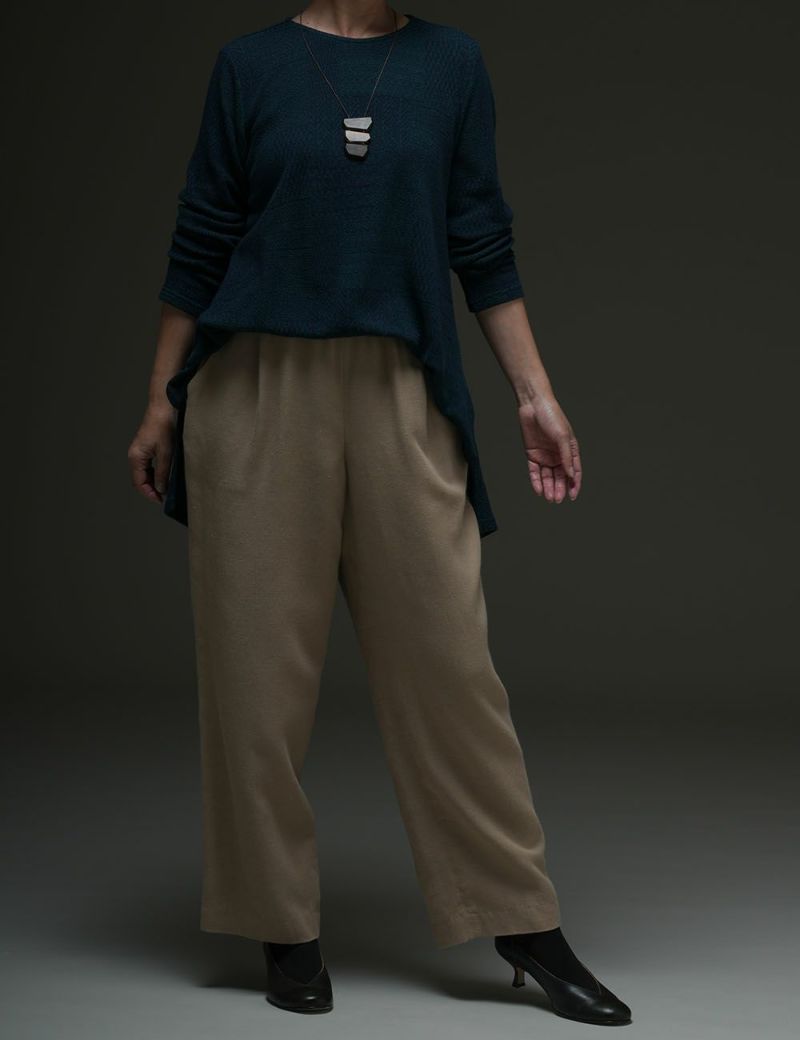 伸縮性が良く、驚くほど軽い着心地のコットンカットソー。細い糸は強い撚りをかけることで「サラリとした清涼感」を引き出し、薄手でやわらかな素材に仕上げました。