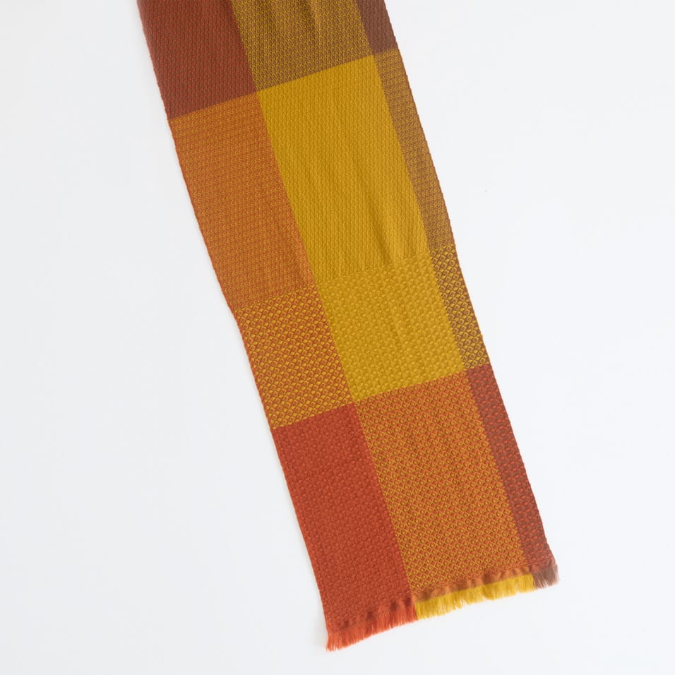 愛媛の工房織座さんと一緒にこだわりを形にした変わり織ストール。2種のウールを配合したふんわり軽い糸を、旧式シャトル織機でゆっくり、糸の風合いを生かしながら織り上げました。3種の織柄と配色の妙で、さらりとまとうだけで上質感は一目瞭然。