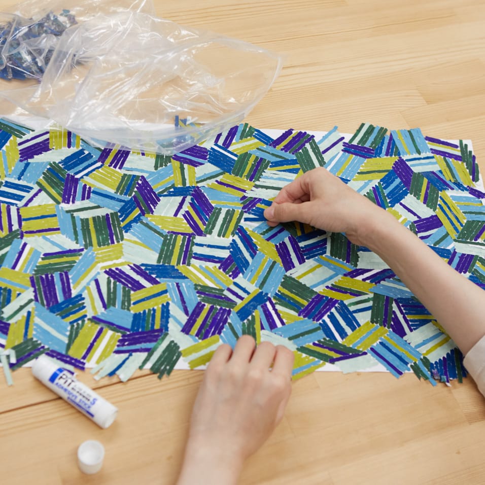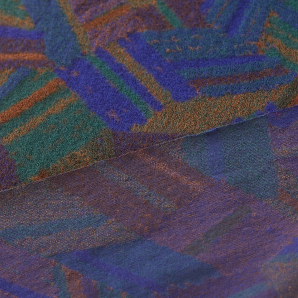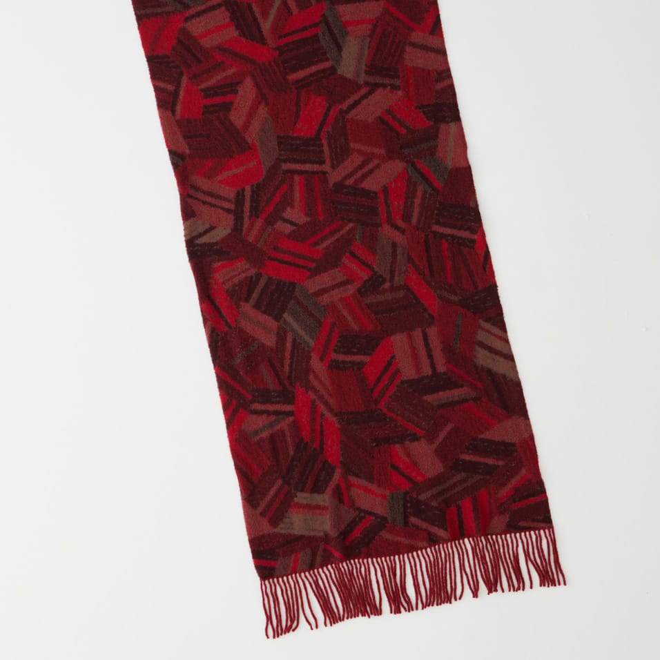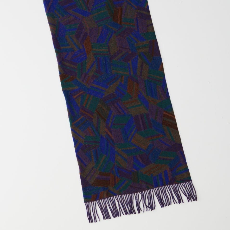 米沢市の老舗・青文テキスタイルさんとつくりあげた、ふんわり軽いパイルジャガードをストールに。寒い冬の朝に地表を覆う氷をイメージした柄が、アーティスティックな印象です。綿とウールを絶妙に組み合わせた素材感は、デリケートな肌にもスムーズ。