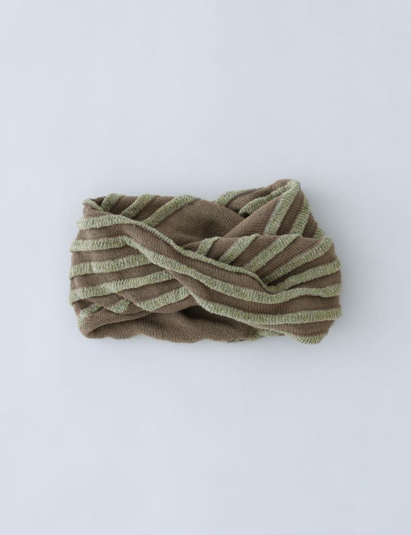 しなやかな綿シルクを生かした、ボーダー状の編み地がおしゃれなターバン。軽くて伸縮性にすぐれ、蒸れ感を抑えたストレスフリーな着け心地を叶えてくれます。ヘアスタイルが決まらない時や、活動的に動きたい日の心強い味方です。