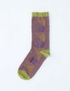 手刺しのステッチキルトを思わせるモチーフを、繊細な編み地で表現したソックス。やわらかな履き口のリブがもたらす、やさしいフィット感がクセになります。ちょっぴりひねりの効いた配色も、着こなしのスパイスになってくれそう。