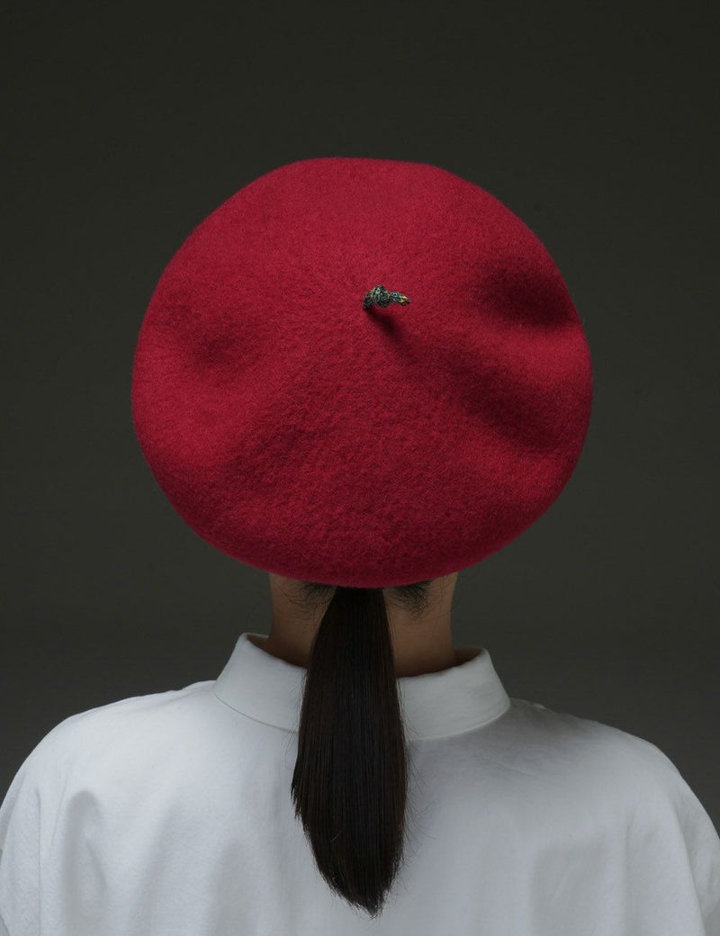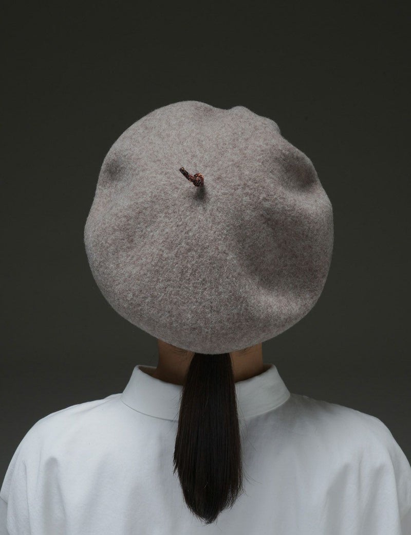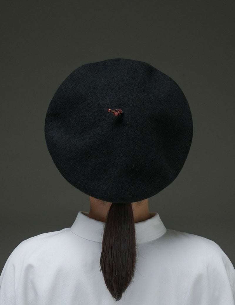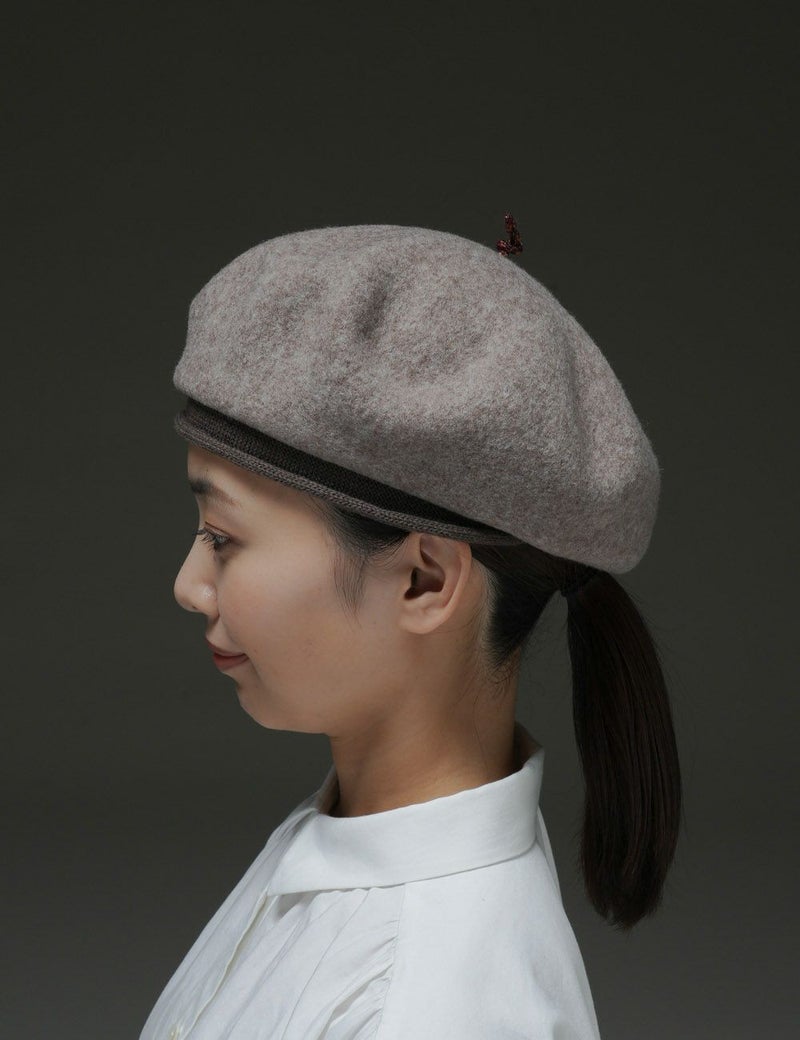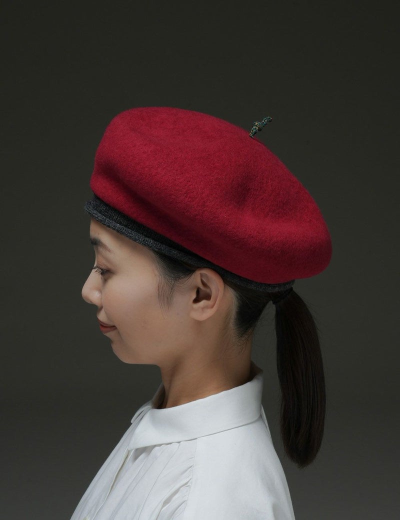 ウール生地の本体と、リブ編みの縁取りの異素材コンビが印象的なベレー。頭頂部にぴょんと飛び出した通称「チョボ」もカラフルで可愛らしく、後ろ姿までチャーミングに。遊び心のきいたスタイルで、おしゃれ上級者の全身コーディネートを叶えます。