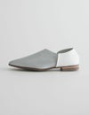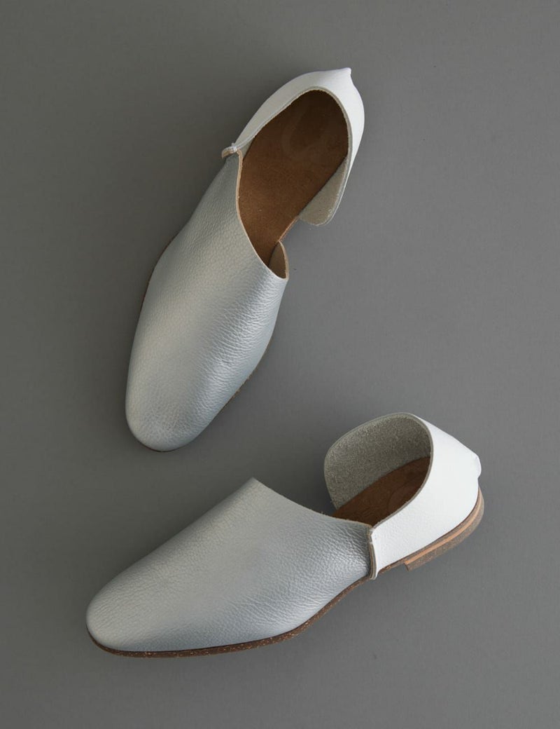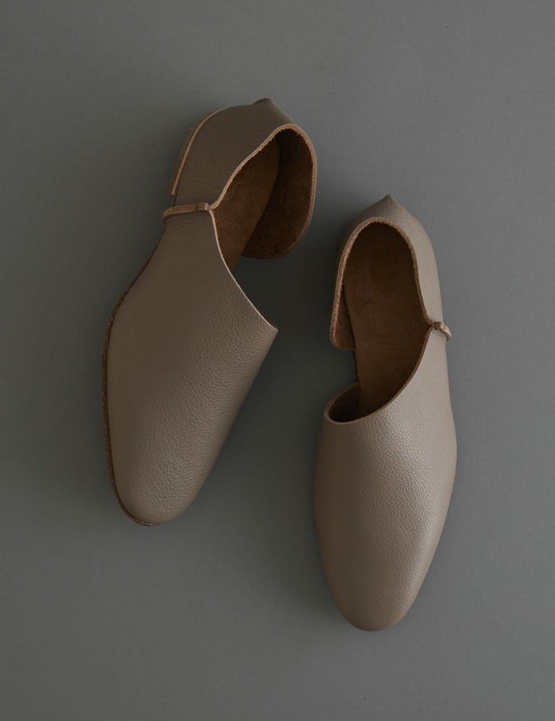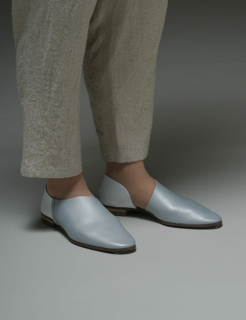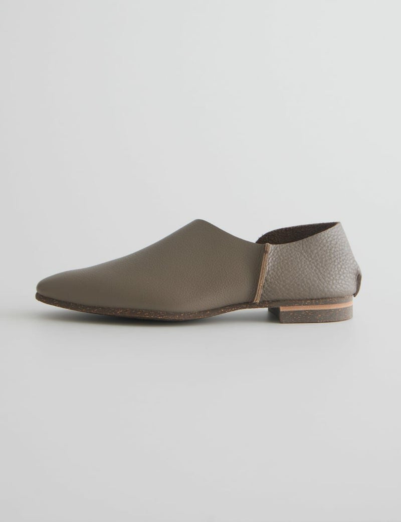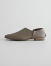 前後2枚の革が生み出す絶妙な斜めカーブが、どの角度から見ても魅力的なスリッポン。軽くてやわらかな履き心地で、甲からくるぶしまで計算し尽くされたラインが足元を美しく彩ります。
