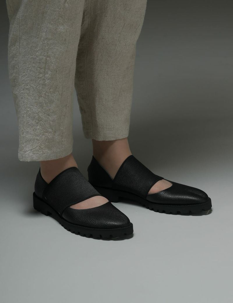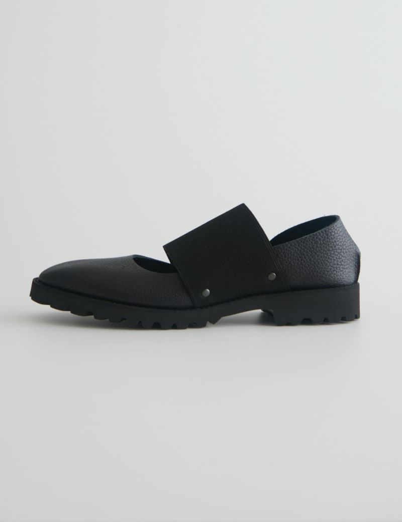 1枚革を贅沢に使用したフラットシューズ。甲の部分にゴムバンドをつけることでしっかりと固定され、歩きやすく疲れにくいのが特徴です。きちんとした印象のデザインと快適な履き心地で、お仕事やお買い物、旅行など、色々なシーンであなたの足元を優しくサポートします。