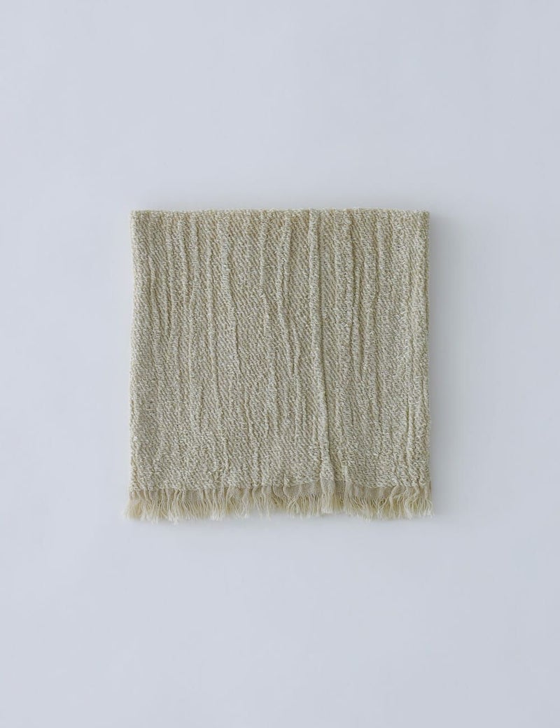 愛知県今治市にて、自然素材のファブリックを手がける「工房織座」。旧式のシャトル式織機に独自の改造を施すなど、織りへのあくなきこだわりから生み出されるマフラーやストールは、肌ざわりがよく長く愛せるものばかりです。