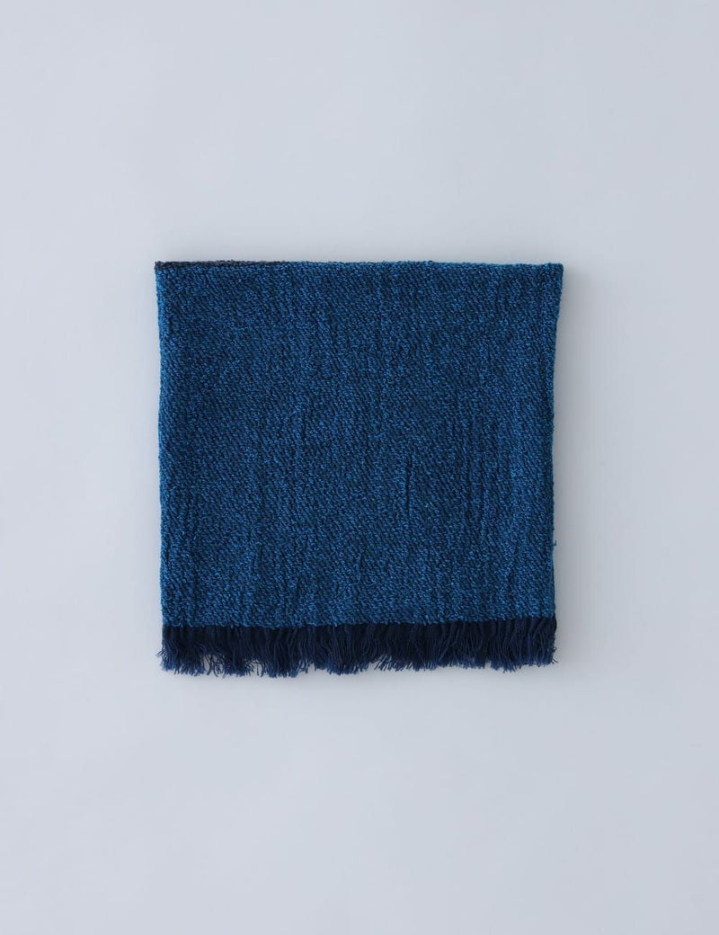 コットンとシルクを編み立てた、軽くてやわらかいネックウォーマー。ツートンカラーのリバーシブル仕様で、折り方によって表情を変えられるすぐれもの。首元を冷えから守りながら、おしゃれのアクセントになってくれます。