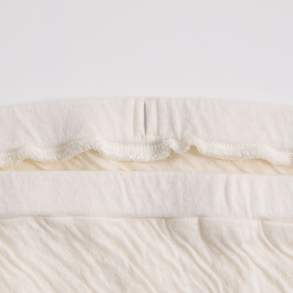 やわらかな2枚の綿の生地のあいだに空気を含んだ、ふんわりとあたたかい素肌にやさしい着心地です。締めつけがなく、包み込んでくれるはき心地は一度はいたら手放せなくなります。