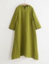 里山に息づく植物からもらった、味わい深い色を楽しむ麻ワンピース。首元を華奢にすっきり見せるスキッパー襟や、手首が見える八分袖、歩くたび揺れるドレープが、ヴィンテージ感漂うリネンと絶妙バランスを醸し出し、着る人を美しく包みます。