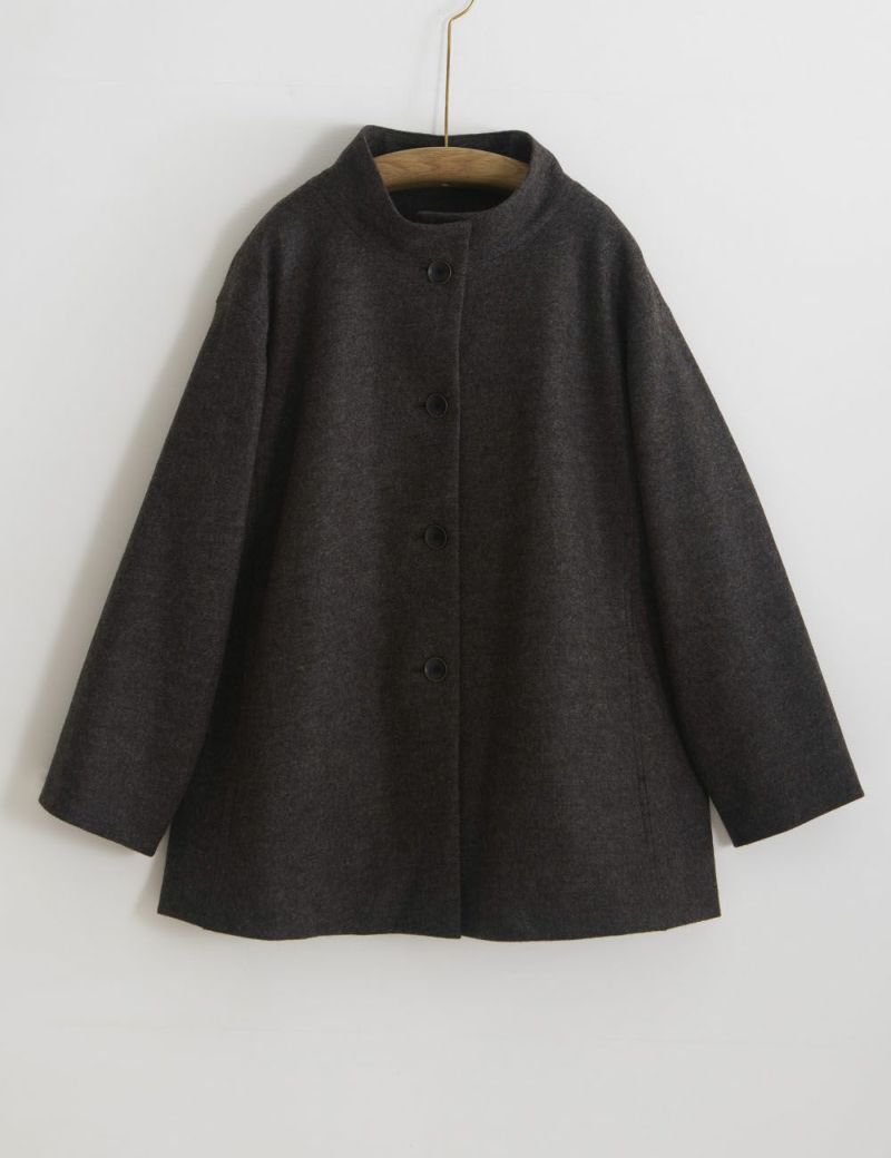ほどよい肉厚感の圧縮ウール生地で仕立てた、軽やかな着心地のアウター。リラックスした着心地ながら、上質な仕立てが大人のきちんと感を感じさせます。分厚いコートにはまだ早い時期にちょうどいい一着です。