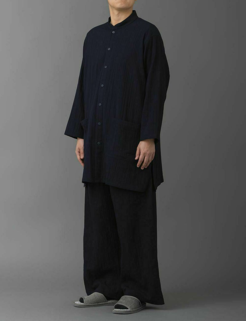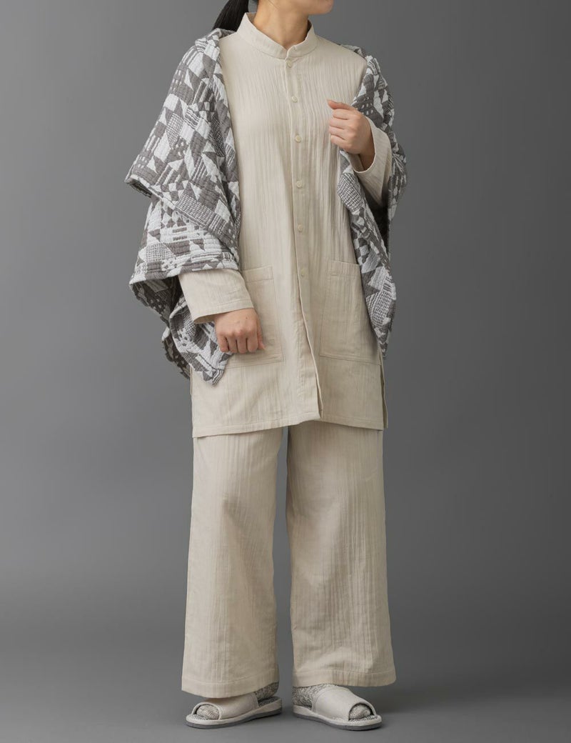「暮らす宿 他郷阿部家」のご宿泊でお使いになってファンになる方も多い、二重ガーゼのパジャマ。M,Lの2サイズ展開で、性別問わずお召しいただけます。心まで癒されそうな、ふんわりやわらかい肌ざわりに包まれて、贅沢な眠りをお楽しみください。