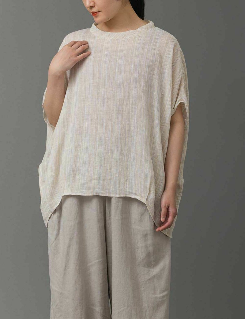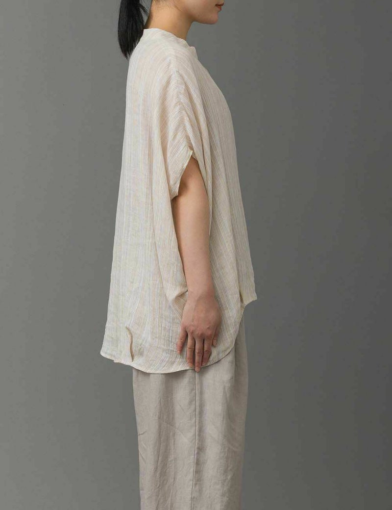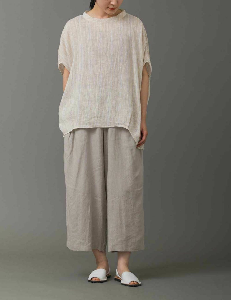 太陽の季節に手放せない、涼やかなビッグシルエット。繊細な細縞のリネンが、シンプルなスタイルに大人っぽさを与えて、多彩なシーンで活躍します。