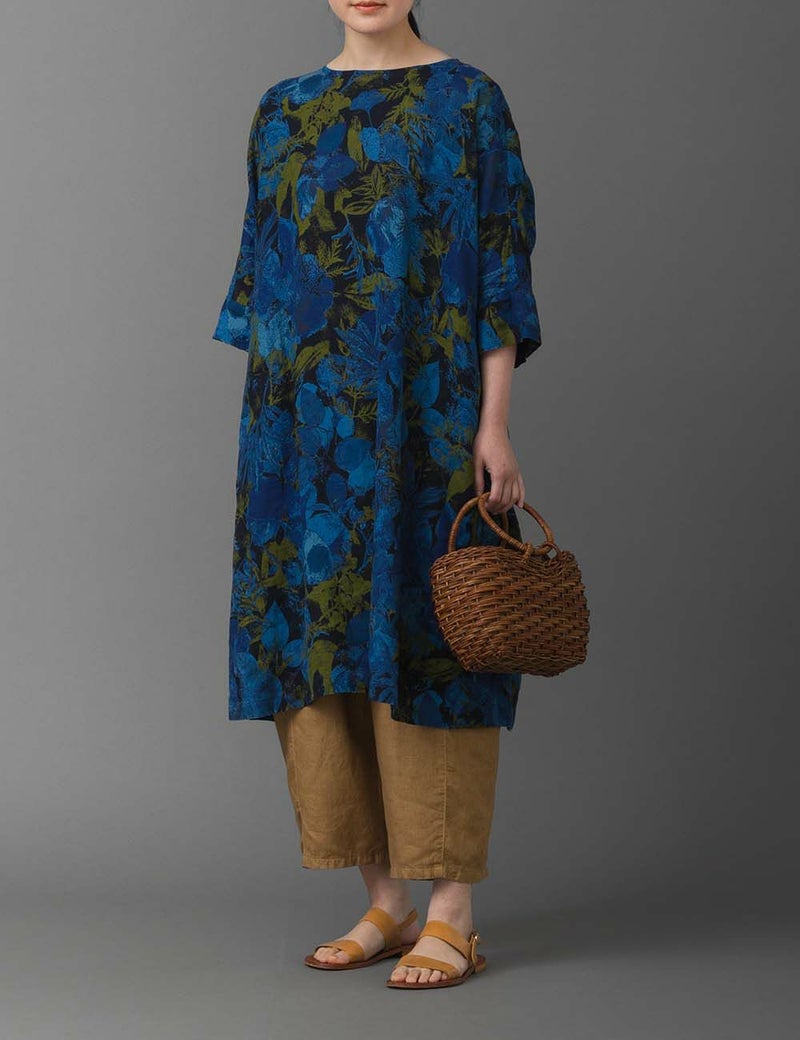 リネン夏の葉プリント