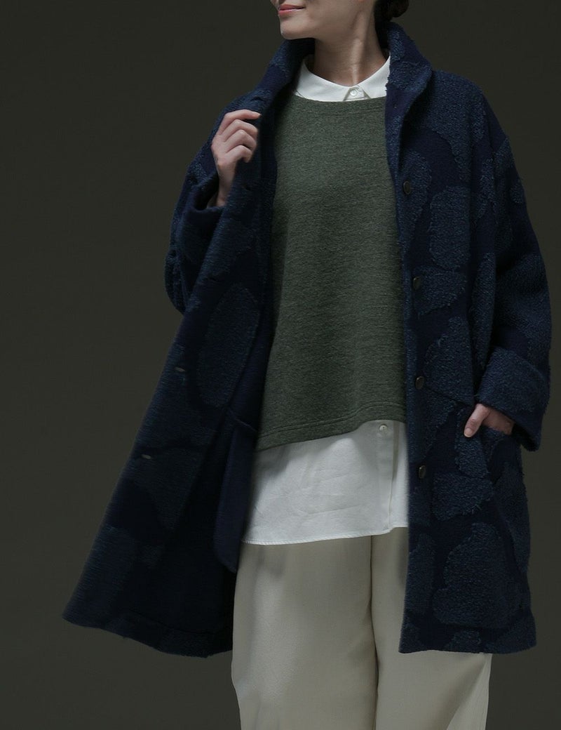 上質な織りが引き立つ個性豊かなアウターを集めました。藍染めの刺子織やふんわり優しいキルト、裏地付きでも軽いコートなど、素材も厚みもさまざま揃っています。