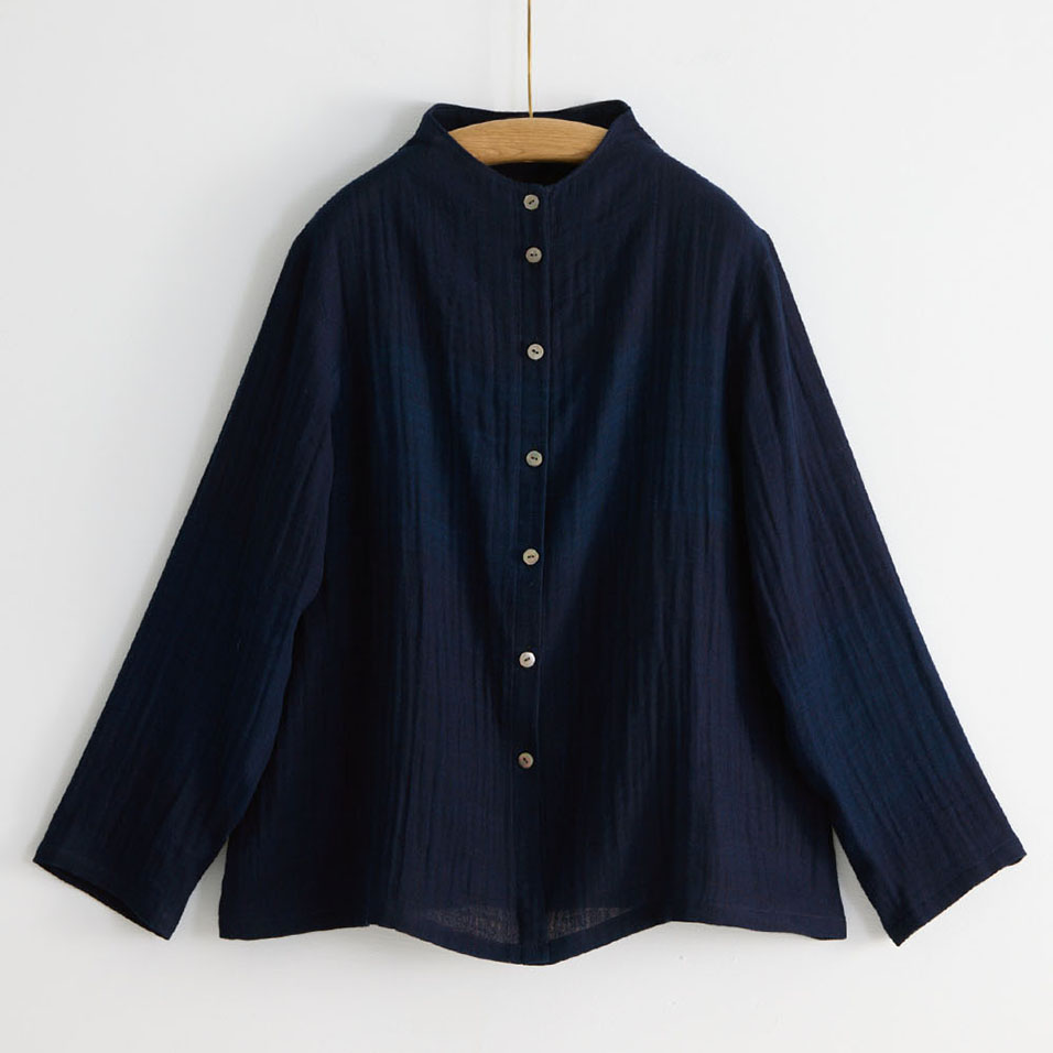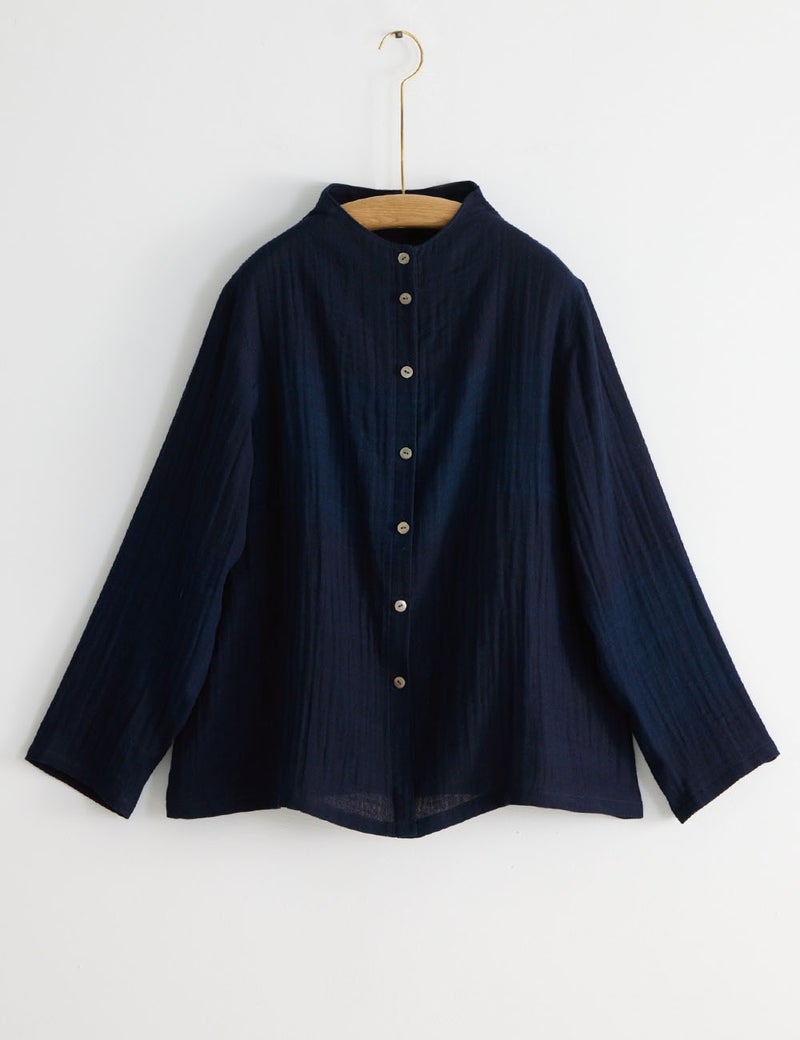藍染二重織裏チェック ブラウス花麒麟(はなきりん)