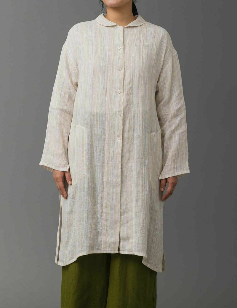 上質な織りが引き立つ個性豊かなアウターを集めました。藍染めの刺子織やふんわり優しいキルト、裏地付きでも軽いコートなど、素材も厚みもさまざま揃っています。