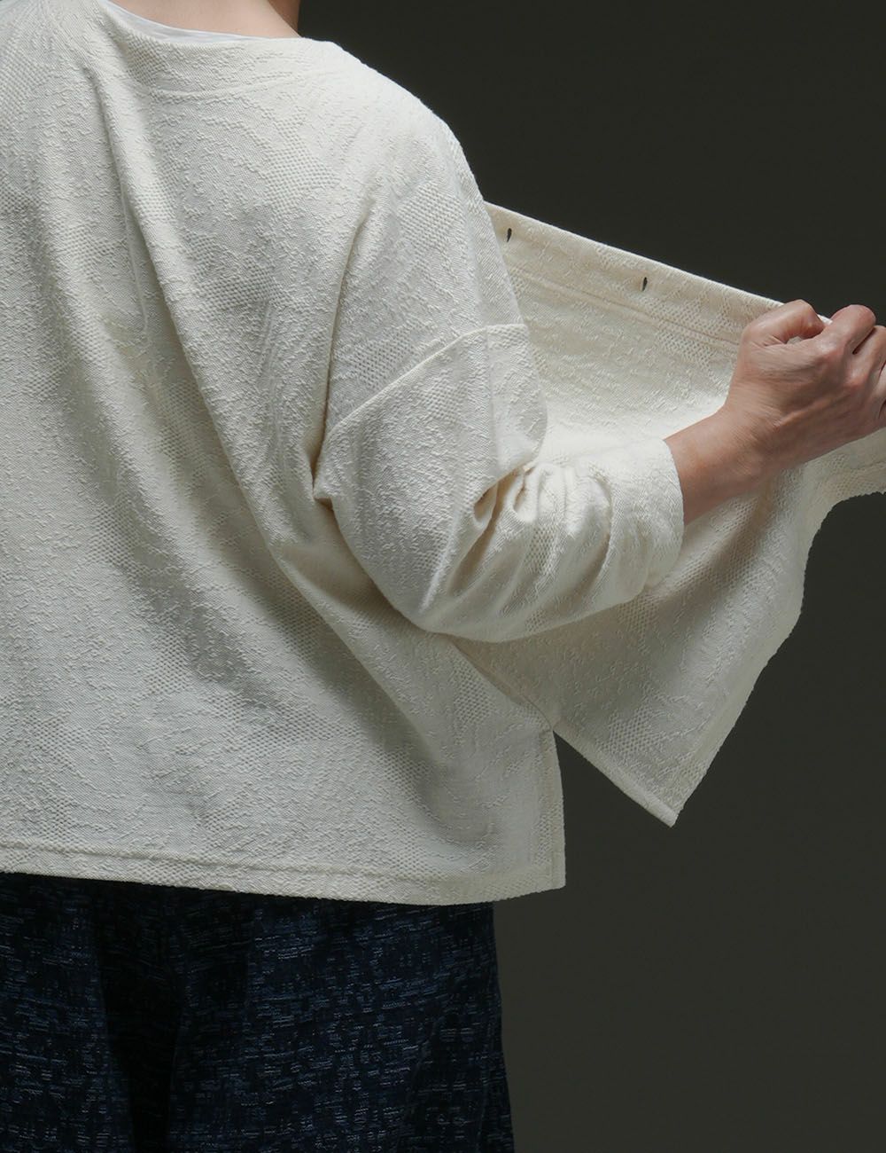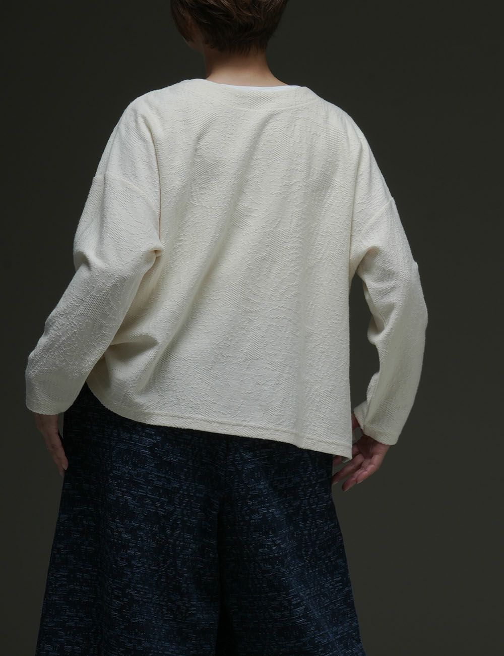 伸縮性が良く、驚くほど軽い着心地のコットンカットソー。細い糸は強い撚りをかけることで「サラリとした清涼感」を引き出し、薄手でやわらかな素材に仕上げました。