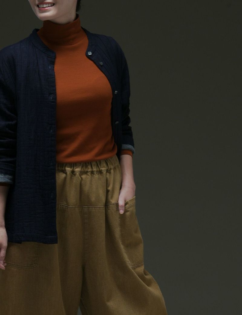 プレミアムコットンの恵みを楽しむハイネックカットソー 。