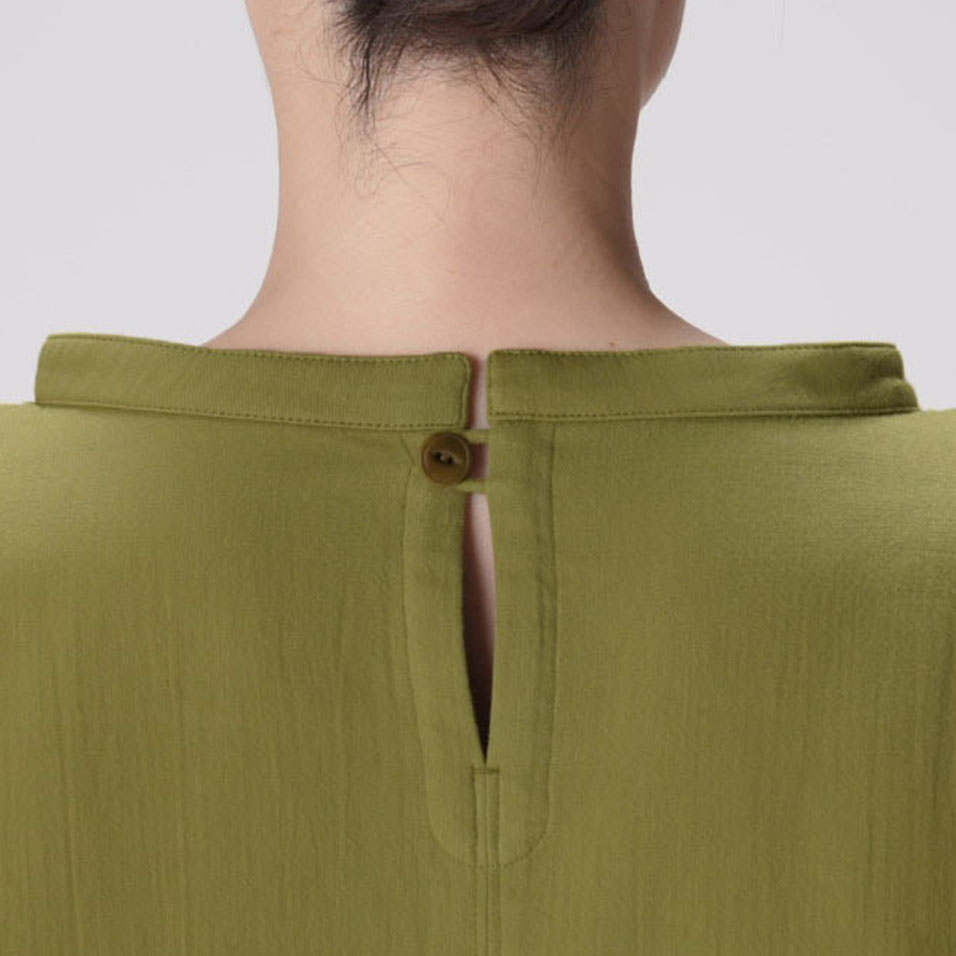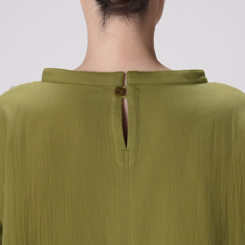 表は綾織、裏は平織になった二重織。織り上がった生地は、長時間かけて丁寧に揉み込み加工をほどこし、やわらかな風合いに仕上げています。ほどよい厚みがありながら、空気を含んでふんわり軽く、肩の凝らない着心地です。