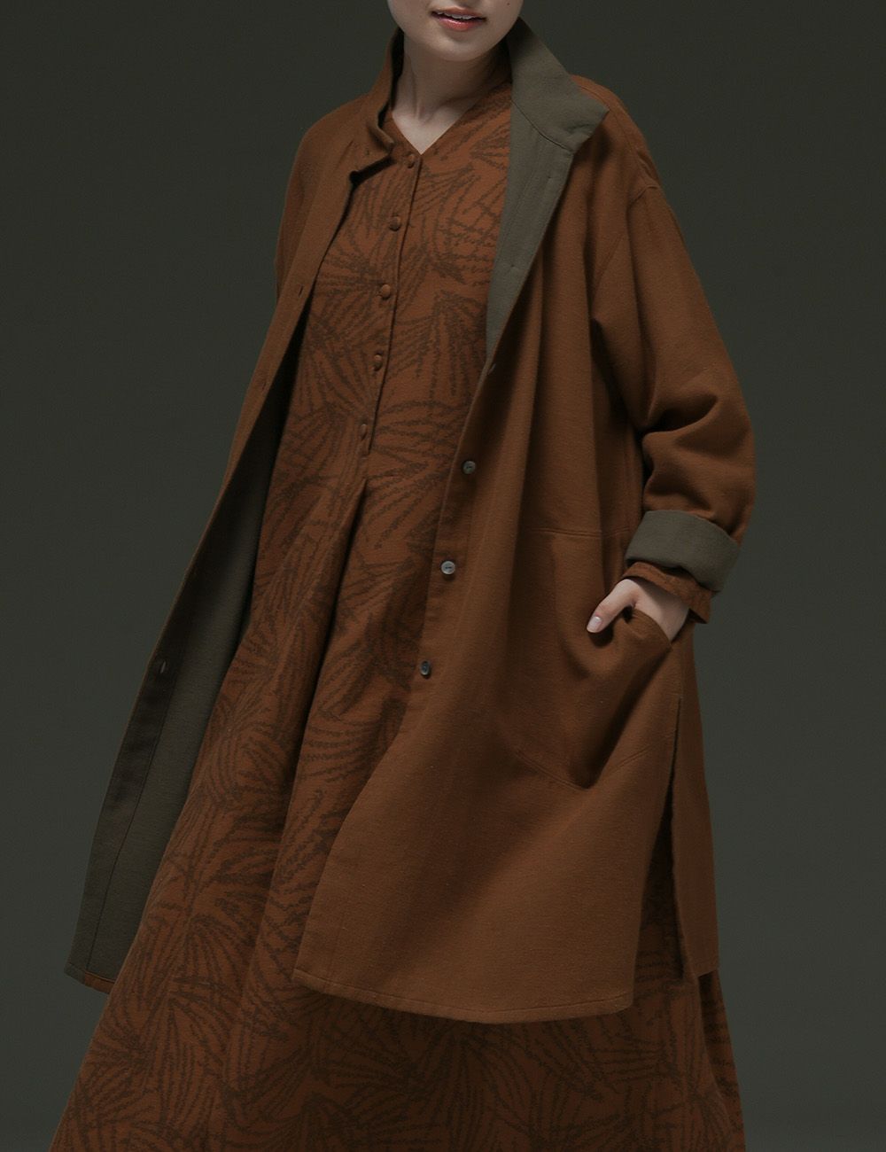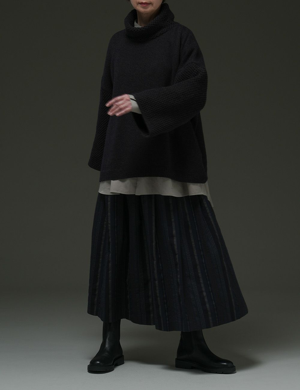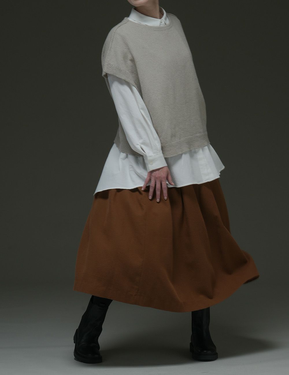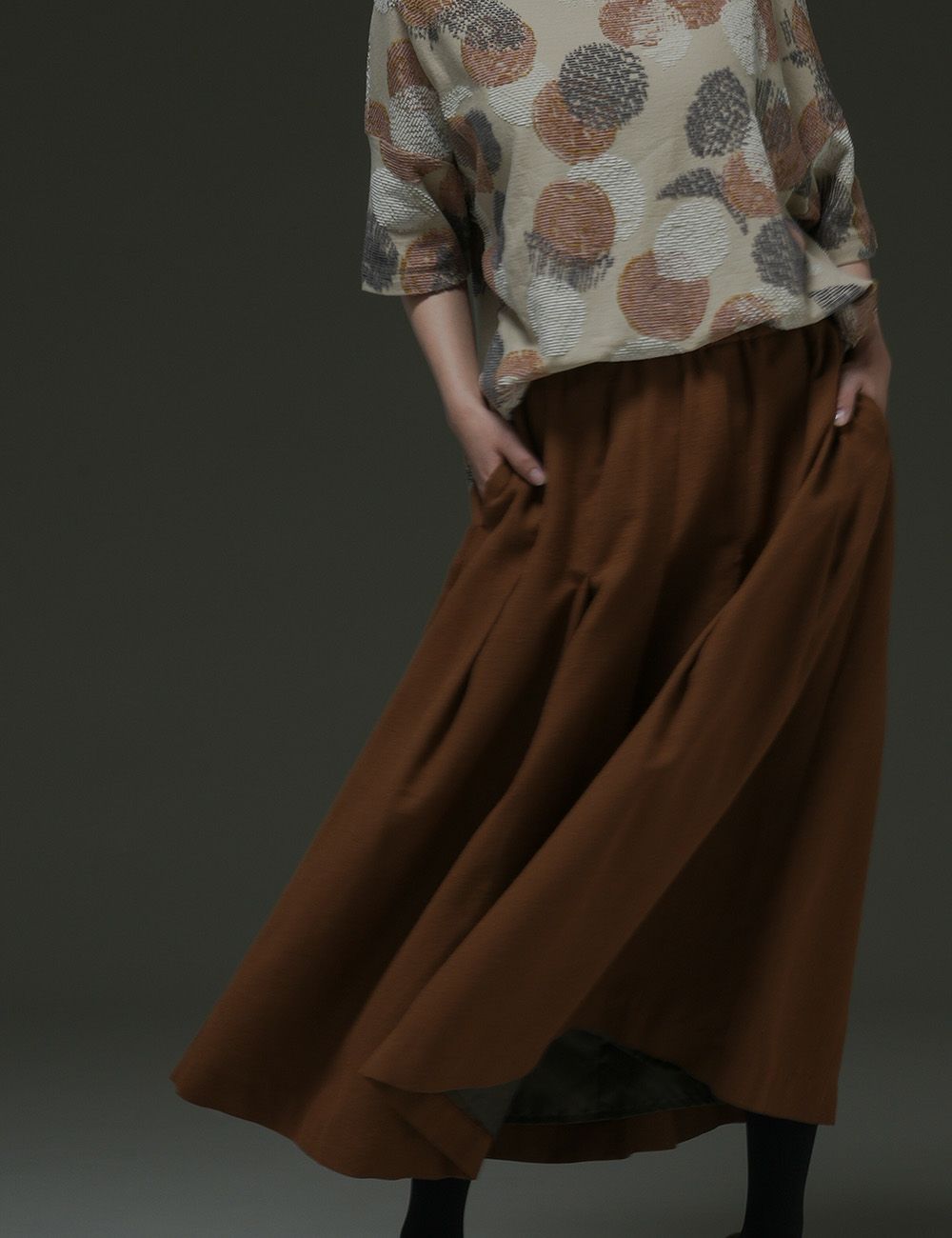 ウール圧縮 スカート貝母(ばいも)